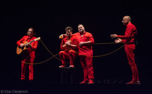 Pour avoir vu plusieurs fois sur scène mes chers Wriggles, une fois il y a bien une quinzaine d’années, et une autre il y a grosso modo deux ans dans un théâtre parisien, je n’avais aucun doute sur le fait que j’allais vivre un excellent moment ; c’était presque de la triche en fait. Néanmoins le tour de force réside dans le fait que les Wriggles redoublent (requadruplent, parce qu’ils sont maintenant quatre au lieu de cinq tiens) de vitalité, de malice, de mise en scène et de pétulance pour nous faire aller de surprise en surprise et nous offrir une expérience toujours nouvelle – un peu comme un Kinder Surprise, mais qui tiendrait ses promesses.