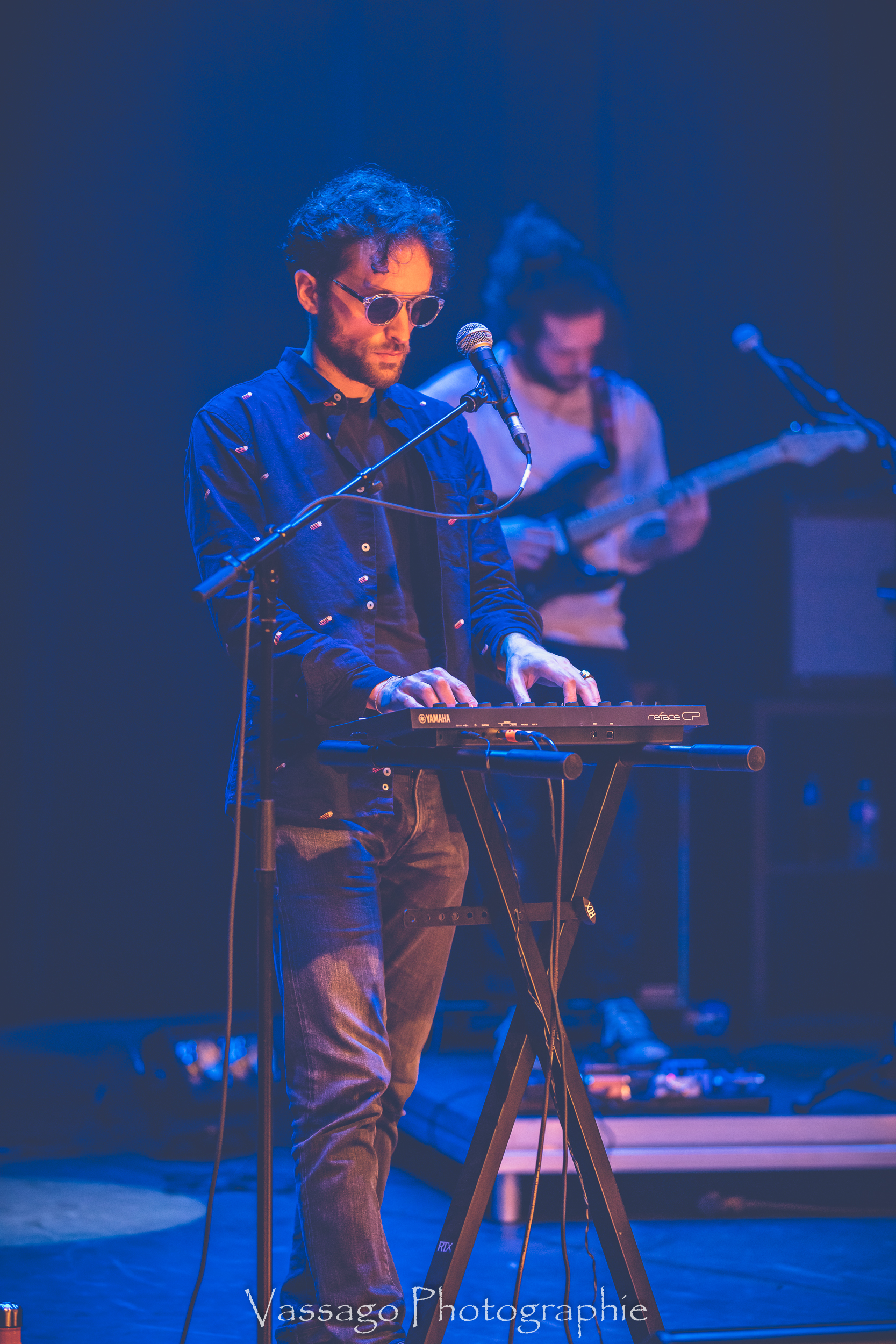 WIGO que nous avions déjà croisé en première partie de L.E.J. à l’inauguration du Douze devait clôturer la soirée, mais la COVID en a décidé autrement. C’est donc à GARCON FACILE qu’à été confié la tâche. Cette fois c’est un groupe de quatre personnes qui débarque : batteur, guitariste/clavier, chanteur/clavier et chanteur. Là encore les textes sont en français mais cette fois le ton est nettement plus léger, à l’image du nom du groupe. La posture générale est assez macho et très second degré. On retrouve ça dans les textes principalement mais aussi dans l’attitude scénique des deux chanteurs avec lunette de soleil, sourires en coin et petites phrases de drague. Pour ma part, scéniquement on passe au cran du dessus. Le groupe est assuré, on sent l’expérience, les titres s’enchaînent, pas trop de silences entre chaque titre. Musicalement nous sommes face à de l’électro qui tire sur le funk et le R n’B sans tomber dans l’emploi du vocoder. On perçoit aussi une petite touche de rock apportée principalement par la guitare sur certains titres. Niveau chant c’est du grand art et les textes très second degrés sont plutôt bien écrit. Si on devait se lancer dans les comparaisons on serait un peu entre Gainsbourg et le chanteur des BB. Brune dont le nom m’échappe en solo pour les textes, avec une certaine nonchalance pédante très assumée qui finalement rend le groupe plutôt sympathique.