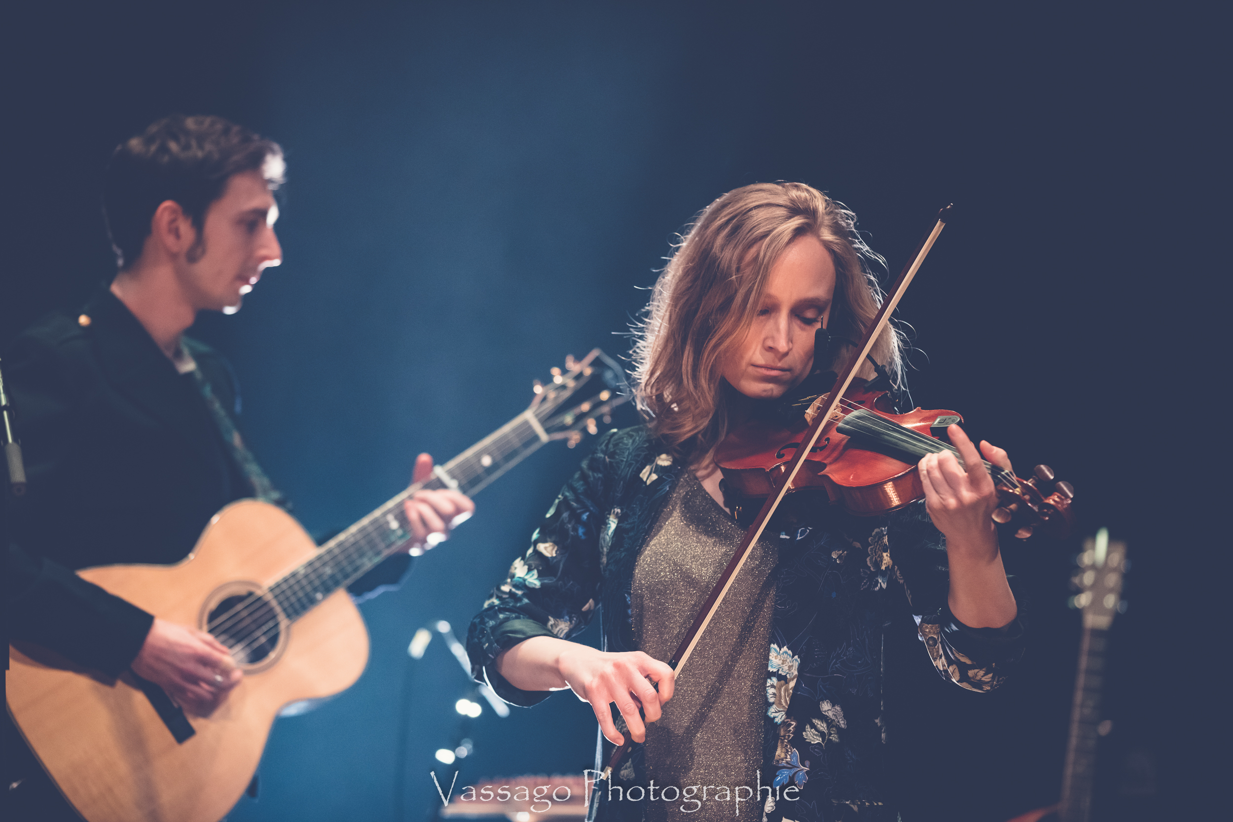 SAMARES prend le relais ensuite. Il s’agit là aussi d’un duo avec un guitariste acoustique et une multi-instrumentiste (guitare, violon, percussion et xylophone… rien que ça) qui fait également office de chanteuse principale. Musicalement cette fois nous naviguons plutôt dans le petit monde du folk à la française (à textes donc). Les thèmes sont majoritairement graves, on n’est pas là pour sauter partout, ce qui donnent aux paroles une importance majeure. On saluera la maîtrise du guitariste qui assure majoritairement les accompagnements à l’aide d’un looper et soutient le chant sur certains passages. La chanteuse quant à elle, comme pour le groupe précèdent, ne souffrira d’aucune imprécision. Là encore nous sommes face à un duo qui devrait pouvoir s’imposer sur la scène folk, variété française. Peut-être qu’une question de temps ?