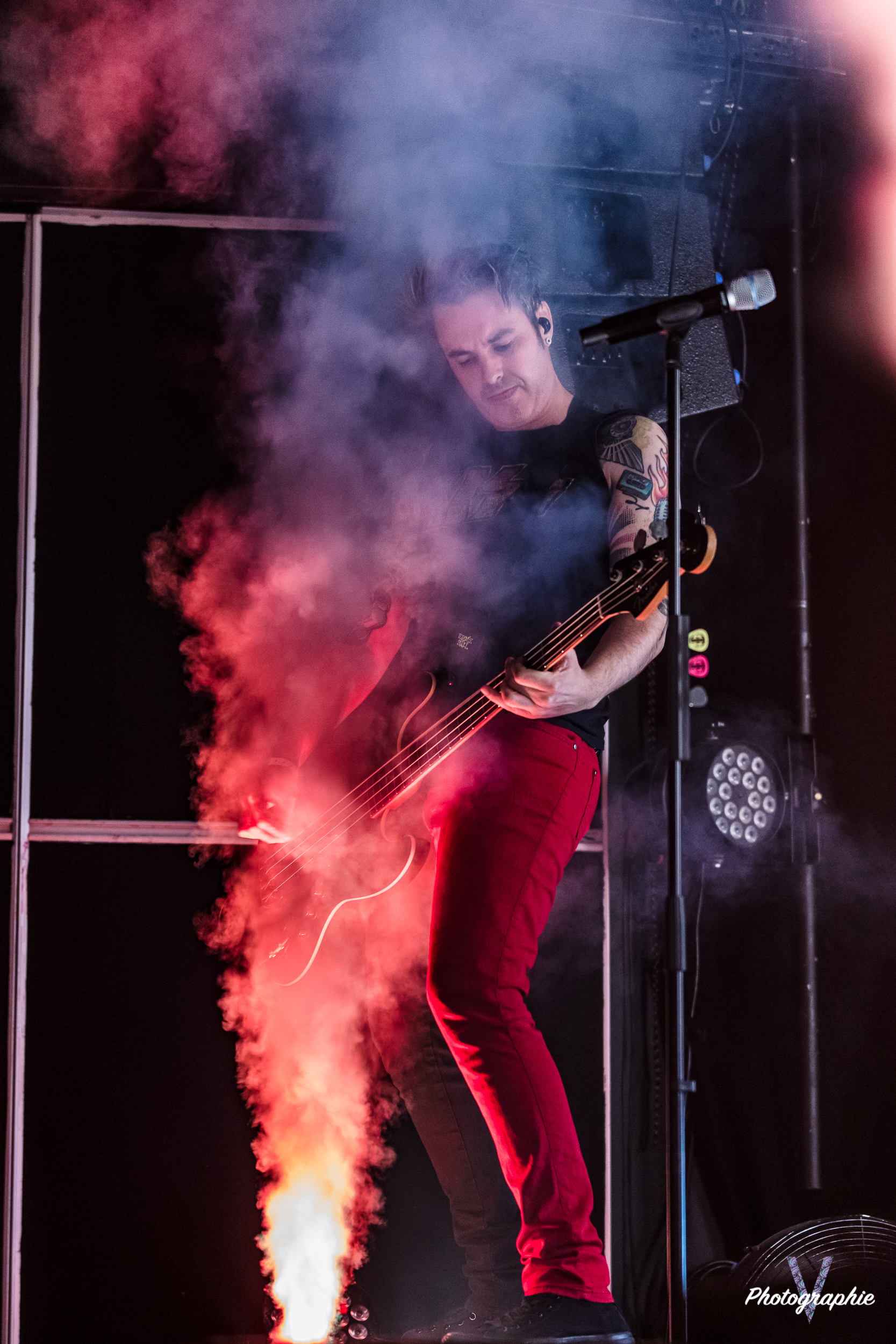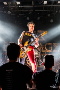 Le show est méga pro, petits effets pyro, tout le monde dans le groupe sait chanter, la communication avec le public, qui peut être le point faible d’un groupe en live, démontre que le groupe a de la bouteille et sait gérer son public et puis même le bon goût est sauf puisque l’un des membres porte un T-shirt Kiss et qu’on ne peut donc rien penser de négatif d’un esthète du rock n roll ! La particularité amusante du groupe au-delà du fait que tous les membres chantent c’est que les deux frontmans échangent régulièrement leurs instruments. Le guitariste devient bassiste et inversement. Ce n’est pas si courant…