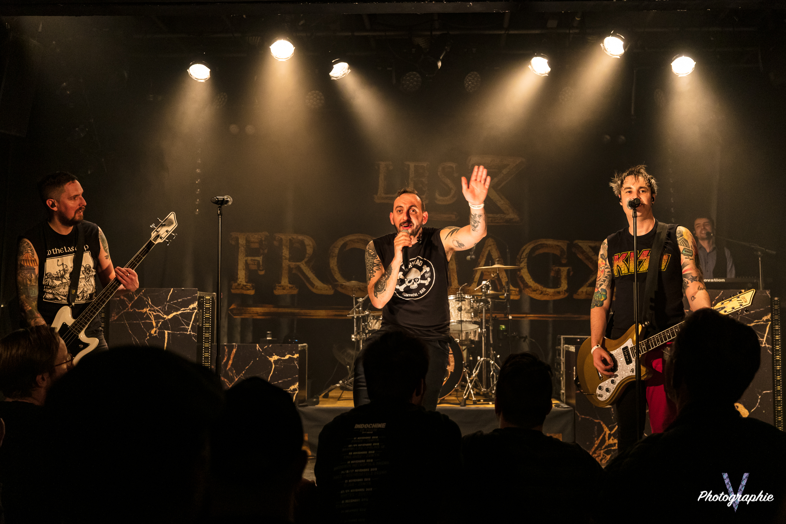 Le groupe qui ouvre la soirée évolue dans une sphère bien connue du rock français : le punk. Il n’est pas sans faire penser à certains groupes de l’âge d’or du genre comme les Bérus ou les rescapés Wampas qu’on a vu il n’y a pas si longtemps dans cette même salle. Ici pas de démonstration technique, on balance les quatre accords de rigueur et en avant Guingamp. Ce qui nous a particulièrement convaincu dans ce set c’est le second degré général, la double lecture des paroles de certains titres et l’apparente décontraction du chanteur entre les morceaux. On se sent entre potes et c’est bien agréable. Et puis le nom du groupe est juste parfait !
