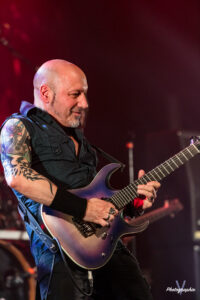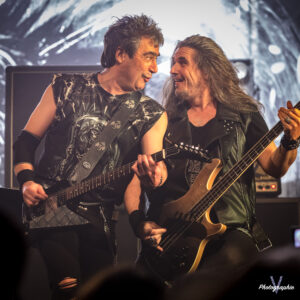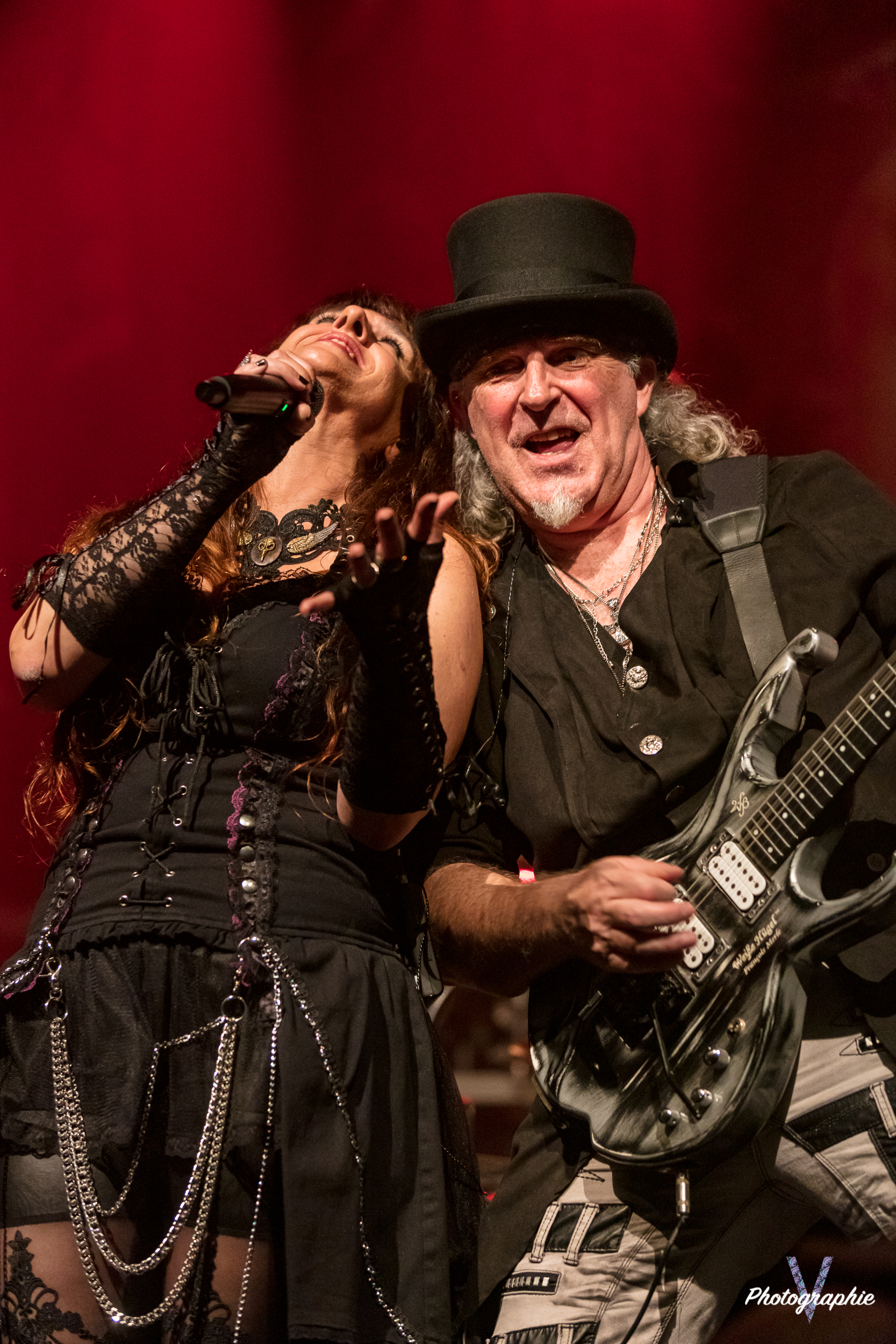 Les titres s’enchaînent, on se rend compte au fur et à mesure à quel point ces morceaux sont efficaces et comme ils fonctionnent toujours aujourd’hui. Même ceux qui pourraient dénigrer le chant français très 80’s ne pourront pas nier la qualité des mélodies et l’efficacité des compositions. Et des groupes de cette époque Sortilège reste celui, avec Trust, qui avait une véritable plume. Aujourd’hui encore, 4 jours après le concert, je me surprends à chanter « Délire d’un fou » en boucle. Pour quelqu’un qui doit écouter la discographie du groupe une fois tous les 10 ans, avouez que ça interroge ! Nous aurons deux invités sur trois titres, Lynda Basstarde (la petite sœur de Matt ?) que personnellement je ne connaissais pas avant ce soir et Stéphane Buriez qu’on connaît pour avoir chantonné dans un petit groupe français de death assez peu reconnu dans le milieu du metal : Loudblast… (Ne me jetez pas des cailloux je déconne !!).