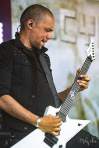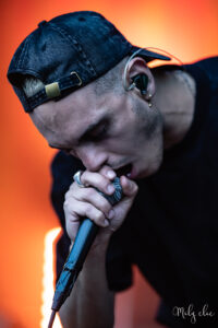 Hypno5e. Comme son prédécesseur, sa réputation est déjà bien établie dans le milieu du metal et même si pour nous, les photographes, les lumières n’étaient clairement pas au rendez-vous (je suis certaine que l’année prochaine ce léger défaut sera corrigé) ils ont retourné le Kave Fest. mais en plus de le retourné, ils ont mis une seconde couche, rabattus les bords, et on replié tout ça sur un public déchaîné.