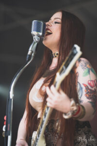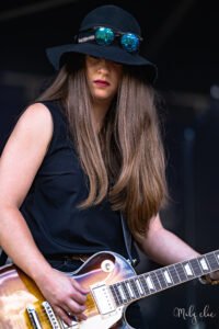 Il en va de même pour le groupe suivant. Je les ai découverts en première partie de Psykup au Forum de Vauréal il y à peu, et déjà, j’avais totalement accroché. J’avais donc assez hâte de les revoir, avec une formation différente car au forum, seul le chanteur était là. Cette fois-ci, la partie féminine de 6:33 était là. Et bien, ça rend le set encore plus dynamique! Mon coup de cœur est plus que confirmé car je repartirais de ce festival avec une veste, un vinyle et des souvenirs plein la tête! C’est complètement barré comme j’aime. Musicalement, aussi. Du rock, du metal, une touche de swing, un côté burlesque et circassien qui donne un ensemble monumental et qui résonne à travers tout le parc du Château de Gisors!