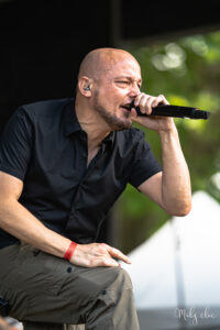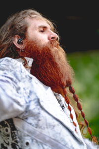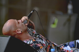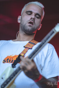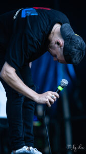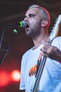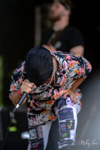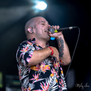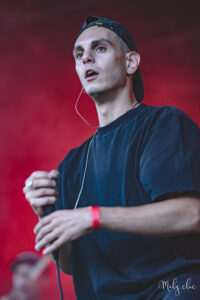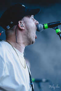 La nuit commence à tomber, la douceur de la fin de journée est là, les festivaliers sont dispersés à travers le parc, lorsque Landmvrks monte sur scène. Le public ne tarde pas à se regrouper et à jouer de la chevelure ainsi que du slam. Je ne connaissais que de nom, voilà qui est corrigé. J’ai bien kiffé ce set!