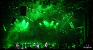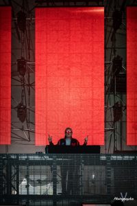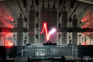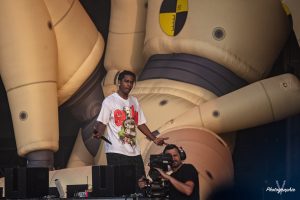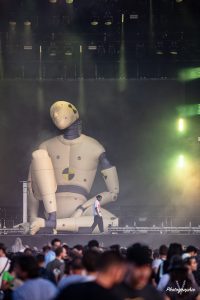 Pendant qu’on attendait le début du show de la tête d’affiche du festival, on a suivi de loin la fin d’ A$AP Rocky. Le décor plutôt sympa avec cet énorme mannequin gonflable nous a tout de suite interpelé. Ensuite l’artiste ira au contact du public, les flammes se mêleront à la fête pour un final très intense.