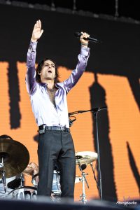 Maneskin c’est le groupe italien qui a gagné l’Eurovision 2021. Vous vous souvenez ? Celui qui a fait scandale parce qu’on a cru qu’un de ses membres se faisait une ligne de coke devant des millions de téléspectateur !! Un buzz incroyable reposant sur une image trop rapide où on ne voyait quasiment rien et l’avidité des journalistes à vendre des articles pute à clique pour torcher nos cerveaux. Au-delà de l’anecdote il y’a un vrai groupe de rock et sa musique et on s’est dit que c’était l’occasion de les voir en vrai, en dehors de tout folklore télévisuel. Sur scène le groupe s’impose sans effort grâce à un savoir faire inattaquable. Le chanteur tient parfaitement son rôle de leader, tout est pro jusqu’au bout des ongles, du choix des tenues de scène à la façon de bouger, on sent que Maneskin n’est pas un phénomène de foire. Les charmes de la bassiste opèrent directement sur les photographes, mais on saluera aussi le costume du guitariste, un truc qui n’ira pas à tout le monde et les filles ne sont pas oubliées avec un batteur à la bogossitude très agaçante ! Bref, voilà un groupe qui a tous les atouts pour s’imposer un moment dans le paysage rock Européen.