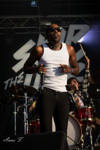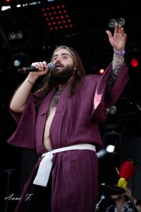 Mat Bastard, comme à son habitude, est tout le temps en mouvement et joue avec le public qui ne l’a pas attendu pour pogoter en le faisant bouger de gauche à droite et vice-versa. Les 4 musiciens ne semblent pas avoir envie de quitter la scène. Ils se placeront dans la foule avec les instruments pour un moment de partage.