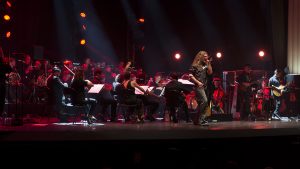 Pendant près de deux heures, les trois chanteurs du mythique West End de Londres (Mollie Marriott, Peter Eldridge et Jesse Smith) ont interprété les plus grands succès de Led Zeppelin, accompagnés sur scène par un groupe de rock et les 40 musiciens du Yellow Socks Orchestra !