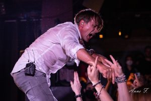 Et effectivement, le chanteur va tout donner, sans cesse en mouvement et constamment au contact du public qui va lui rendre autant. Vers la fin du premier set, il va même descendre distribuer des câlins sur la ballade What am I without you ?