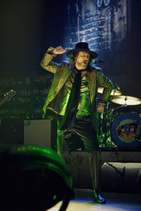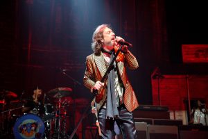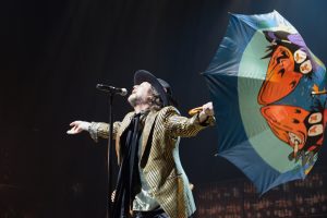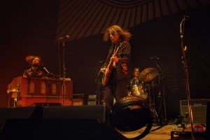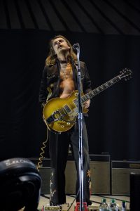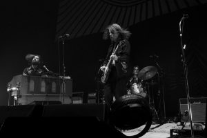 Chris Robinson, brandissant un parapluie paré du logo, n’est apparu sur scène qu’après les premiers accords de « Twice as Hard ». Les Black Crowes ont suivi leur set avec sept autres titres tirés pour la plupart leur deuxième album « Southern Harmony et Musical Companion » sorti en 1992 pour finir, avant le rappel, avec « Remedy ».