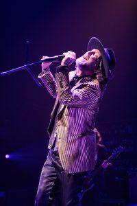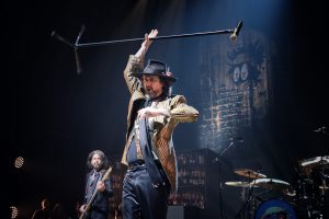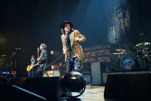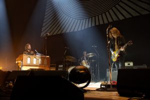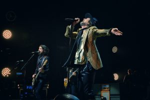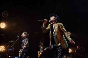 Le show a commencé dans un décor de bar/saloon, derrière lequel un barman est reste planté presque durant presque tout le show. Après avoir porté un toast à l’anniversaire de leur album sur « Shake Your Moneymaker » d’Elmore James, les Black Crowes, flanqués pour l’occasion de deux choristes, ont enchainé les titres de l’album oscillant entre rock & roll et rhythm & blues.