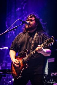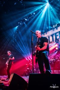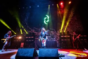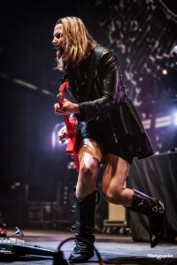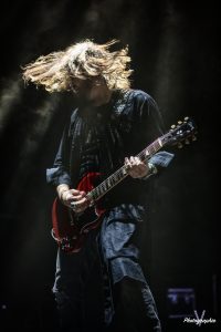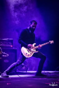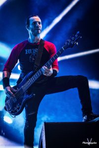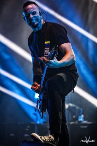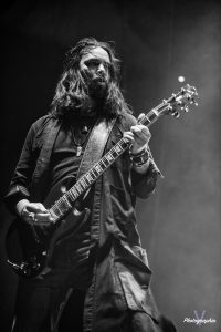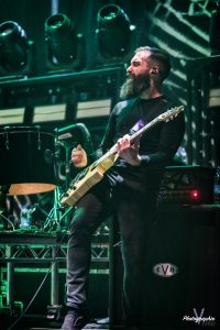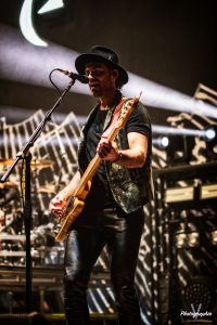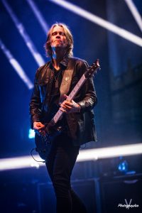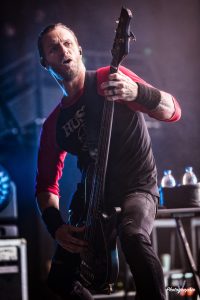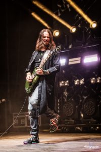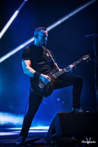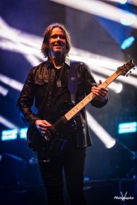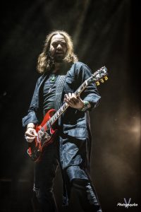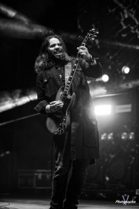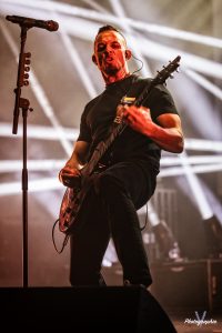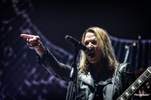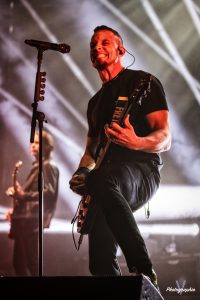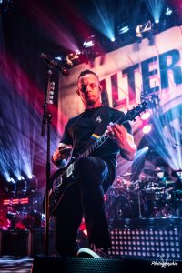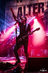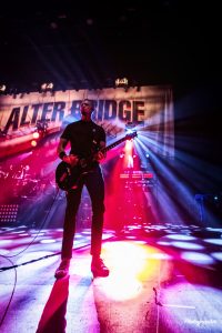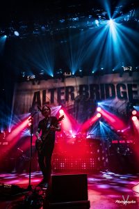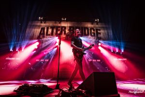 Mais quand Alter Bridge entre en scène les regrets s’effacent et on profite. On ne va pas se mentir, Alter Bridge n’est pas le plus grand groupe scénique du monde, Miles n’a rien d’un showman et même si le reste du groupe joue avec de belles attitudes on est dans du spectacle assez classique. A titre perso j’adore les attitudes de Mark Tremonti, pour le photographe son visage expressif est un beau terrain de jeu. C’est surtout musicalement que la formation remporte la timbale, avec des titres extrêmement bien écrits et fortement calibrés pour plaire, il raflent à tous les coups la mise sans avoir à trop faire d’effort.