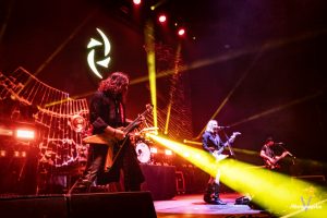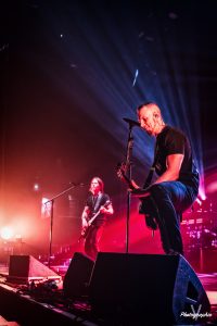 Côté setlist on tape un peu dans tous les albums et quand on suit le groupe depuis longtemps on est forcément frustré de ne pas entendre certains de ces titres préférés. C’est le problème avec les groupes qui sortent beaucoup d’album avec énormément de titres efficaces ! On aura droit à Pawns & Kings, This Is War et Silver Tongue issus du dernier album et même s’il est très bon et que le choix de ses titres est surement le plus logique, vu qu’il s’agit des titres mis en avant sur les réseaux médiatiques, on aurait préféré un titre de moins au profit d’un classique de plus. Non en fait je pense qu’Alter Bridge est condamné à produire des shows toujours plus longs à mesure qu’il sortira de bons albums car pour contenter tout le monde, piocher quelques titres dans chaque album sera toujours frustrant. Il faut tout jouer ! (On me glisse dans l’oreille qu’il faut que j’arrête d’exiger l’impossible… bon ok).