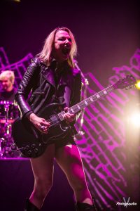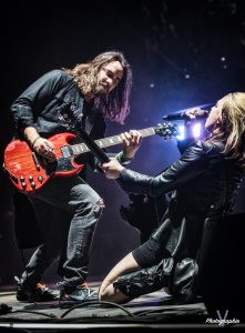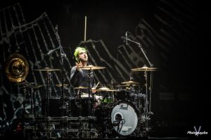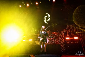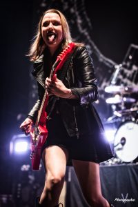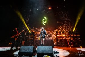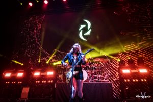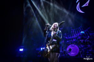 Les conditions sont bien meilleures, ça aide un peu d’avoir une belle lumière et un son de bonne qualité. D’ailleurs ça laisse à penser qu’Halestorm fait presque figure de co-tête d’affiche que de première partie. Quoi qu’il en soit, le groupe emporte la salle et son public dans son voyage avec facilité et c’est presqu’avec regret qu’on les voit sortir de scène.