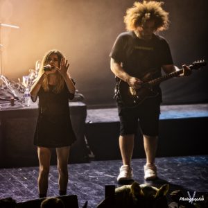 Le groupe entre en scène avec une mascotte. On aurait pu s’attendre à une grenouille, mais c’est plutôt un lapin gaulé comme un videur qui va se charger d’aller mettre l’ambiance tout partout dans le public et sur scène. L’idée est bonne, ça fonctionne plutôt pas mal. Sur scène on retrouve monsieur Frog de son vrai nom Léo Moracchioli accompagné par Rabea Massaad à la guitare (il échangera sa place avec le batteur le temps d’un titre), Hannah Boulton viendra chanter sur quelques titres, voilà pour ceux qu’on connait. La fine fleur des youtubeurs Norvégiens est là finalement !