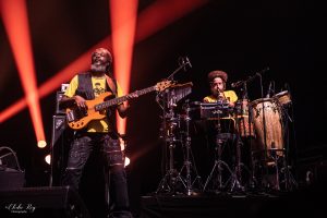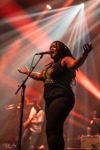Place à Groundation, après un changement de plateau quasi complet de 20/30min, le public brandit des drapeaux aux couleurs de la chaleureuse musique qu’est le reggae dès l’entrée du groupe. Venus nous (re)présenter leurs titre emblématiques mais surtout leur dernier album studio « One Rock » ! Cet album de 9 titres vous fera entendre des groupes mythiques comme The Abyssinians, The Congos ou encore l’artiste Israel Vibration. Un album d’une grande qualité, ponctué de son sonorité jazz, retransmis pour nous sur la scène de l’Olympia par ses tous ses grands musiciens !