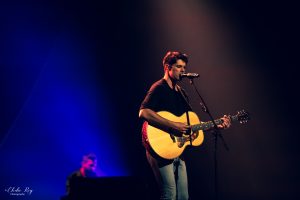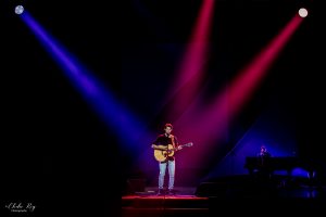 Un piano à queue et un micro disposés sur la scène plantent le décor. Lilian Renaud entre avec sa guitare dans une salle tamisée. Dans cette ambiance quelques mots au sujet de sa musique jouait dans son état le plus simple et le pur, les cordes d’une guitare et celles du piano. Il nous jouent ce soir les titres de son dernier album studio « Dans un moment de bonheur », qu’il a autoproduit.