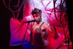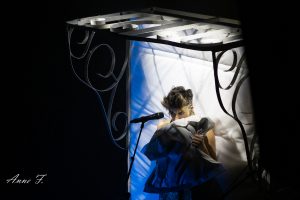 Chaque morceau est ponctué d’une petite histoire qui, avec humour, renforce la proximité avec le public. De même, au rappel, sur Jalouse, une spectactrice monte sur scène pour aller chanter dans le lit qui sert de décor.