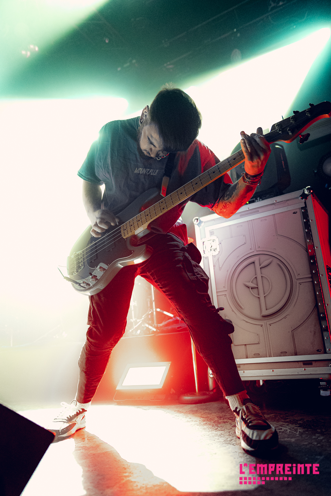 Nous retrouvons tout d’abord Ashen, après leur concert au Metal Sphere. Nous retrouvons la même énergie que le mois dernier. On apprécie particulièrement la performance et l’expression gestuelle de Clem (chant). Le concert commençant relativement tôt (18h30), la salle n’est pas encore bien remplie. Et c’est bien dommage pour les retardataires car le groupe offre une performance digne de ce nom. On comprend mieux pourquoi ils viennent d’annoncer participer à la tournée française de While She Sleeps l’année prochaine.