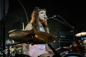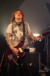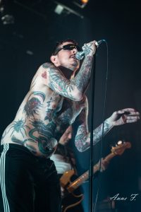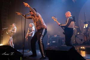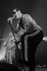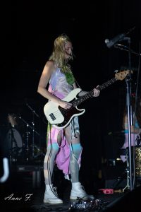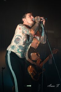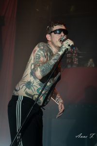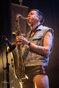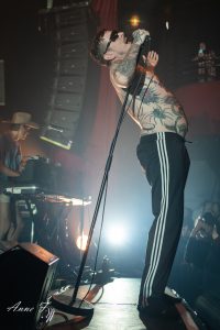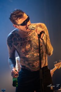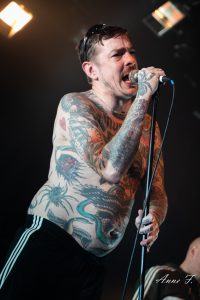 La salle est maintenant totalement remplie et les Viagra Boys très attendus. Dès le premier morceau, slams et pogos, qui par moments seront d’un bout à l’autre de la fosse, sont de la partie. L’énergie est Punk-rock mais les rythmes sont dansants. Le tout est teinté de Jazz et de Blues avec le saxophone régulièrement mis en avant. Le chanteur fait le show, jouant avec sa bière ou s’allongeant par terre. Le son est très fort et l’ambiance ne redescend pas même pendant les morceaux plus calmes.