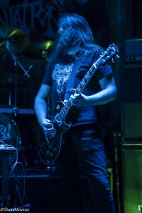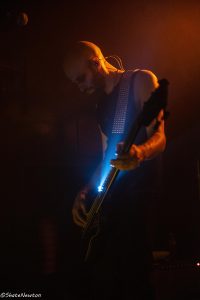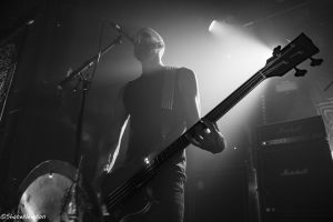 La salle est quasi pleine dès l’entame de la soirée, comme très souvent pour les dates d’Headbang au Grillen. Le groupe éphémère entre en scène discrètement dans le brouhaha de près-concert avant de capter progressivement l’attention de l’auditoire. Ambiance calme dans la fosse, particulièrement à l’écoute de la proposition musicale. Le trio remplit l’espace sonore sans difficulté. La longueur de certains titres perd quelques personnes au passage, sans doute plus friands des styles qui suivent, mais la technique, en particulier de la basse, est facilement appréciable.