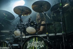 Place forte et référence du Death Metal aujourd’hui, c’est en 1989 que prend racine l’histoire d’Incantation. Partis à 4, John McEntee ( Guitare lead et rythmique et voix (depuis 2002)), Paul Ledney (Voix et Batterie), Brett Makowski (Guitare) et Aragon Amori (Basse), le groupe garde depuis toujours la même structure malgré un nombre impressionnant de changements avec pas moins de 16 membres consommés en 33 ans avant d’arriver au line up actuel. Depuis leur début, 11 albums studio sont sortis, dont seul le dernier, Sect of Vile Divinities enregistré en 2020, avec le quatuor à jour.