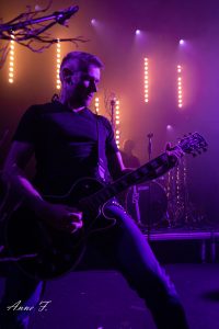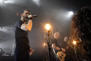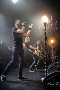 Dans un registre un peu différent, The Dead Old Tree nous proposent ensuite leur Metal Gothique Progressif. La scénographie, composée de branches et d’ampoules, nous met de suite dans l’ambiance. Ils alternent entre morceaux puissants et d’autres plus calmes. L’émotion est tout autant présente dans la salle que sur scène.
