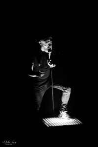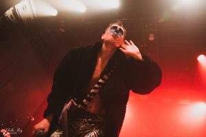 A première vue la nom coïncide avec sa tenue et son maquillage, vêtu d’un grand manteau et d’un maquillage bleu de Singe. C’est énergique et frais, un habitué de la scène vraisemblablement qui n’hésite pas à interagir avec eux et à sauter dans le public ! On nous dit qu’il va repasser bientôt au File 7 (le 23 mars), à vos agenda !