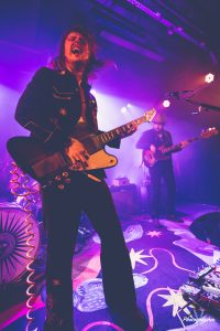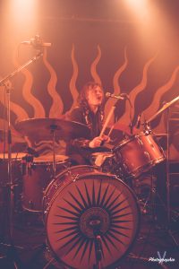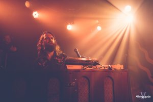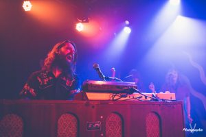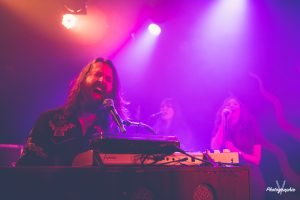 Dewolff nous propose, ce soir, une nouvelle formule avec des choristes et un bassiste pour compléter le trio habituel. Sur certains titres ils reviennent aux fondamentaux à trois lorsque l’ambiance se veut plus intimiste. On a droit aux longs solos aux claviers et à la guitare, le chant se partage entre les frangins à la gratte et à la batterie. Dans la salle les gens kiffent, certains arrivent même à danser un peu sur place. Il est très étonnant de compter énormément de trentenaires, c’est après tout une génération qui, par essence, n’a pas connu cette époque et qui devrait être moins touché par ce revival. Pour la question de la set list, on vous laisse parcourir celle qui se trouve dans cet article. De notre côté, nous avons particulièrement apprécié les passages instrumentaux où chaque musicien est habité par la partie qu’il joue. Car c’est un spectacle à l’ancienne qui nous est proposé avec des titres hors format radiophonique aux évolutions plus riches que le classique couplet/refrain/solo/refrain. Une véritable ode à la complexité structurelle de la musique comme on le faisait dans les années 70 qu’on appelait alors simplement Rock et qu’on a qualifié aujourd’hui de Progressif pour justifier la pauvreté de l’actuel par rapport à celui-ci.
