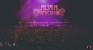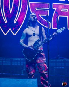 Alors que la salle commence sérieusement à se remplir, c’est donc le trio Néo-Zélandais qui est chargé d’ambiancer la salle avant l’arrivée de Gojira. Le batteur d’Alien Weaponry entame une version revisitée du haka, un rituel traditionnel issu de la culture maorie. Ça surprend quelque peu, mais cela donne le ton du live qui nous attends. Emmené par les frères De Jong (batteur et guitariste du groupe), le groupe impose sa sonorité quasi surnaturelle et incantatoire, qui correspond parfaitement à l’identité Maori que le groupe défend. Cela restera une belle découverte pour notre part.