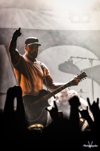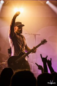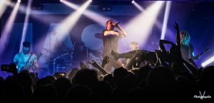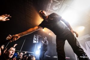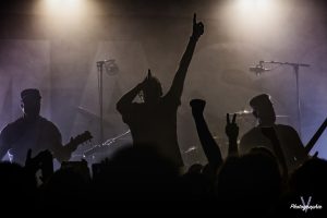 On le sait tous, Mass Hysteria n’a plus grand-chose à prouver dès qu’il est question de live. On se souvient de la forte impression que le groupe avait faite au Download Festival en 2018 avec une mise en scène ambitieuse et réussie. Cette fois, c’est sans far que le groupe va se présenter devant ses « furieux ». Juste quatre musiciens, qui viennent en découdre avec quelques lights et franchement ça suffit. N’en jetez plus, la salle est pleine, ça transpire, ça slam (un peu mais pas trop, l’âge moyen du public de Mass est à la longueur de sa carrière), on a la relève sur les épaules de la génération précédente et tout le monde avec la patate ! Ce concert nous permet de vérifier si les textes sont toujours d’actualité et il faut bien reconnaître que malheureusement pour certains d’entre eux qui dénoncent, c’est toujours le cas. Nous aurons droit à deux nouveaux titres qui se fondent dans le reste de la setlist constituée des classiques du groupe. Tous les Furieux et toutes les Furieuses en auront pour leur argent, ce soir, et ce n’est pas le premier rang occupé par tout un fan club qui semble suivre le groupe partout qui dira le contraire.