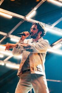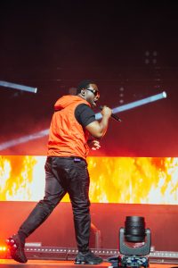 On connaît la passion du Rap chez les jeunes et ce soir, ils ont été servis ! Dinos, rappeur accompli, fait une entrée remarquable. L’artiste s’amuse à arroser le public avec sa bouteille d’eau pour faire baisser la température qui était déjà bien haute. Même si plusieurs malaises ont eu lieu, cela n’a pas empêché Dinos de chanter ses plus gros titres comme Helsinki ou bien Du mal à te dire.