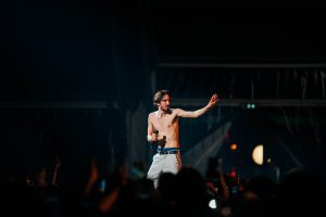 Lomepal, l’artiste le plus attendu de la soirée, arrive enfin. Le rappeur aux chansons mélancoliques qui parlent d’amour a fait chavirer le cœur des jeunes filles présentes ce soir au W. L’artiste se rend compte à chaque concert que ses chansons ont une importance chez les jeunes en leur laissant chanter le refrain de quelques titres dont Trop Beau.