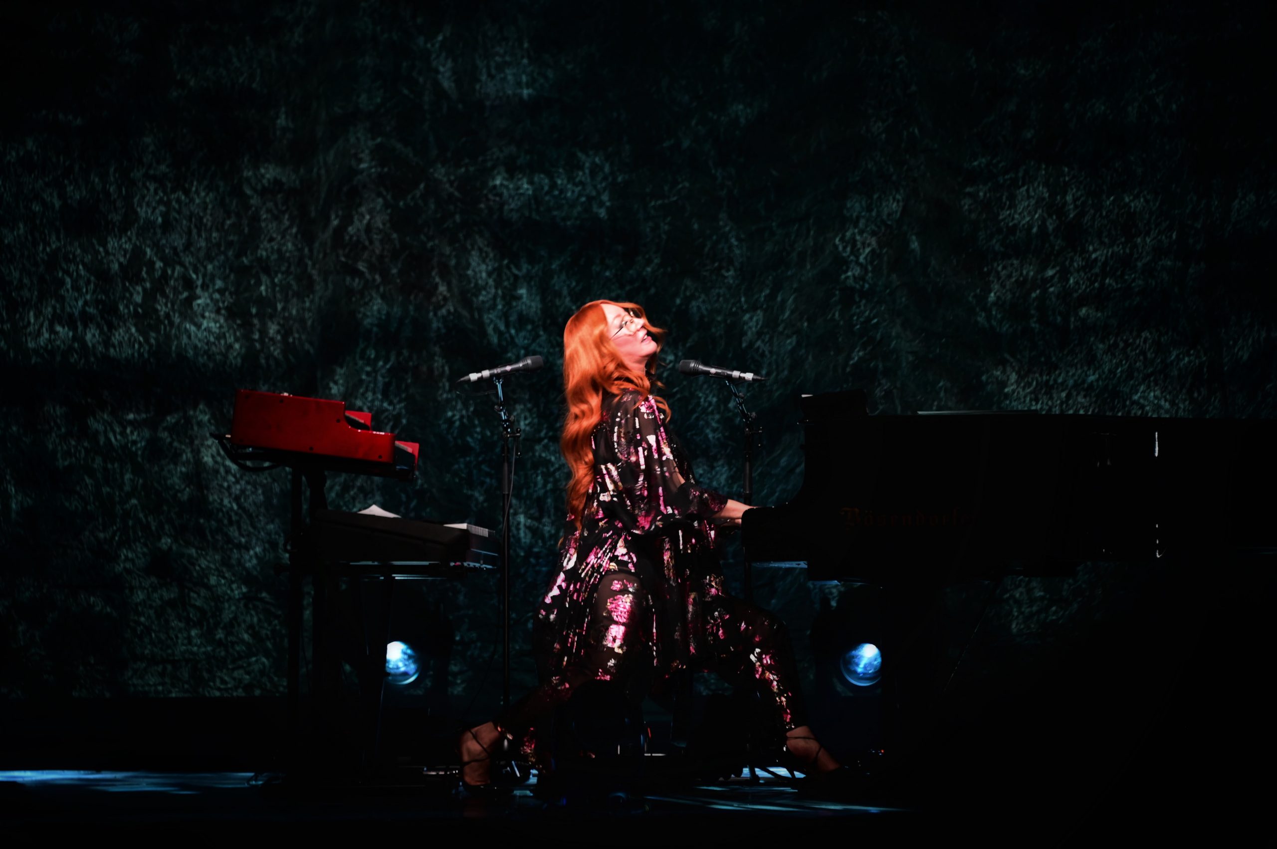 Montant sur scène à 20 h 30, Tori Amos prend place entre son piano à queue de concert Bösendorfer. Pendant les deux heures de concert, Tori Amos va alterner entre ses trois claviers et son piano, parfois à cheval sur son siège.