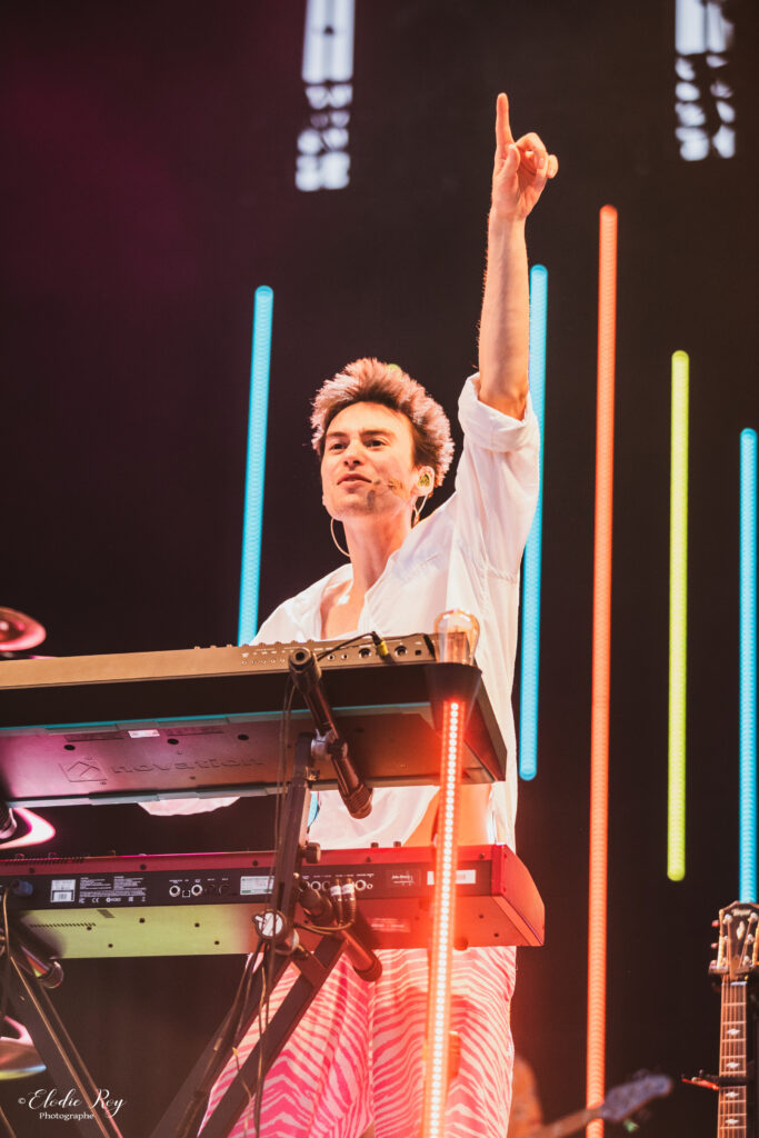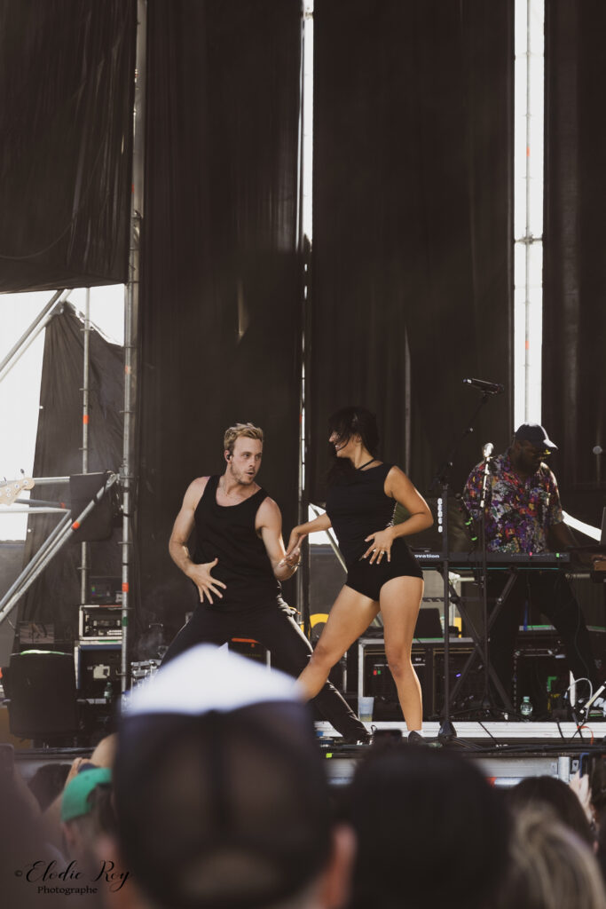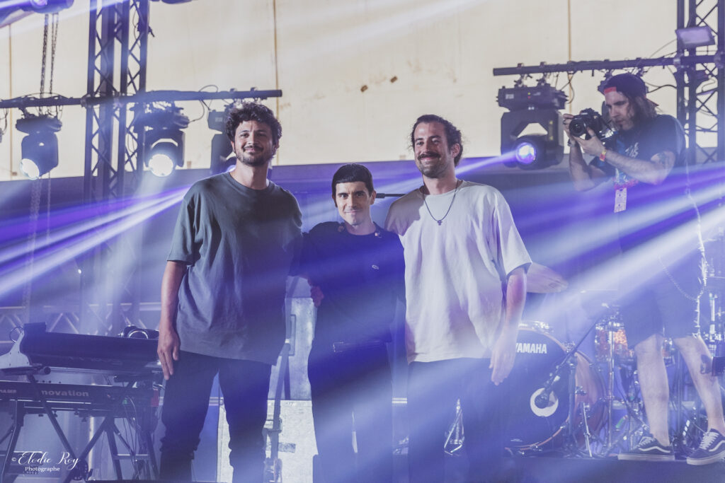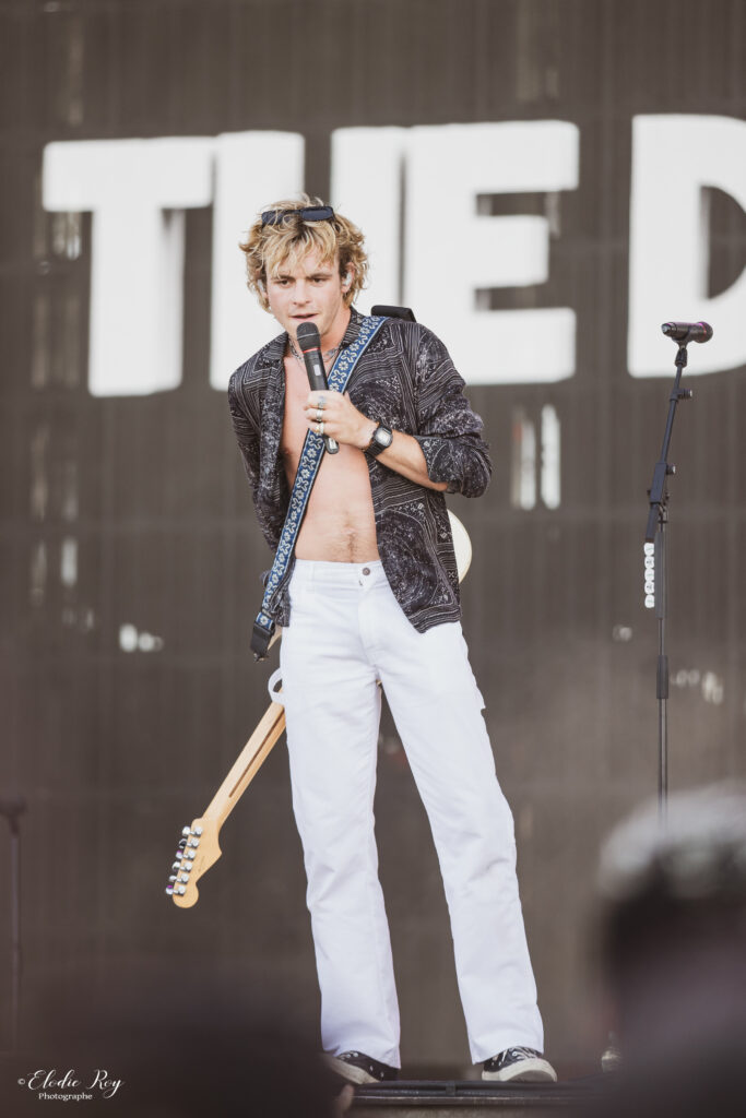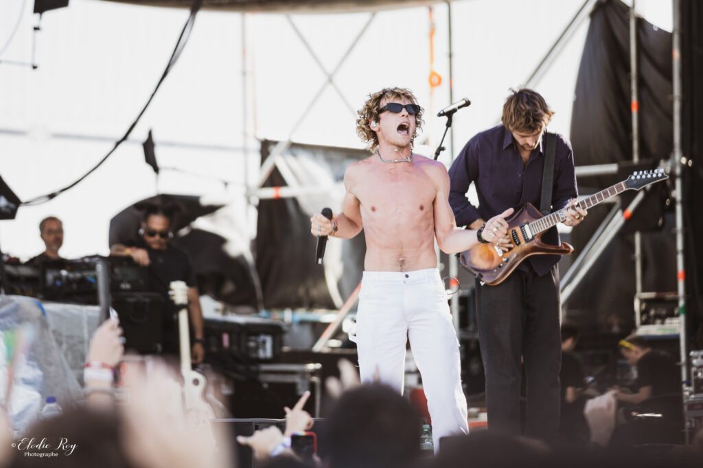 Le second jour du festival démarre sous le soleil avec le groupe américain THE DRIVER ERA. Ce nom ne vous dit rien ?! Si je vous parle du boysband R5, vous allez sans doute le reconnaitre. Suite à la séparation du groupe en 2018, les frères LYNCH ont continué la musique sous le nom de THE DRIVER ERA. Musicalement, c’est assez complexe de mettre un genre musical car certaines chansons en live sonnent Rock et d’autres Pop avec des touches ReggaeE et Disco. Le groupe est composé de 5 personnes sur scène. Pas le temps de s’ennuyer, on a le droit à un interlude de danse d’un des musiciens avec une jeune femme. Fort sympa. Il ne pouvait pas y avoir de meilleur show pour débuter cette journée en douceur.