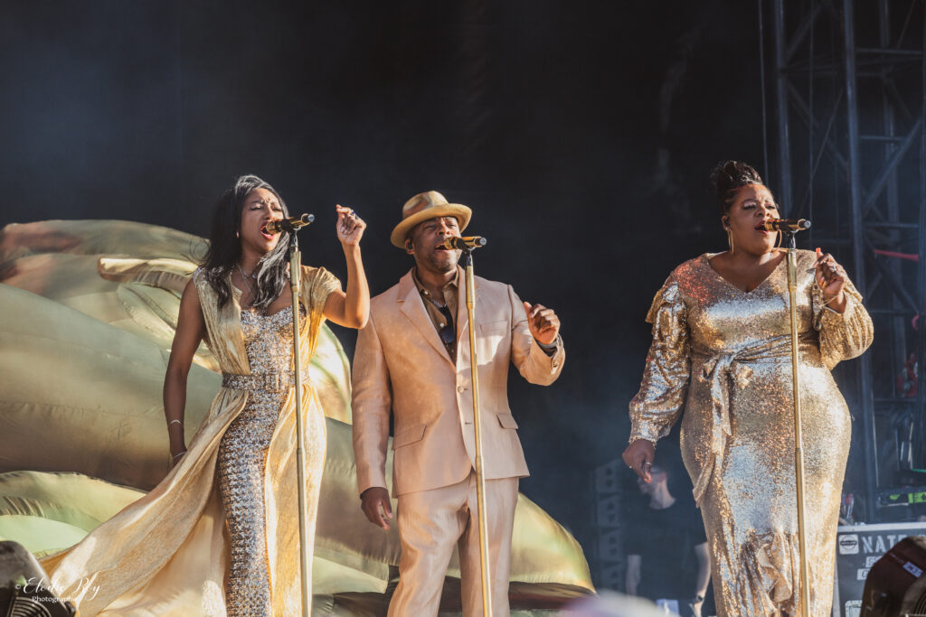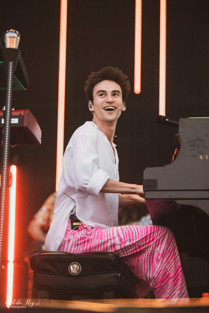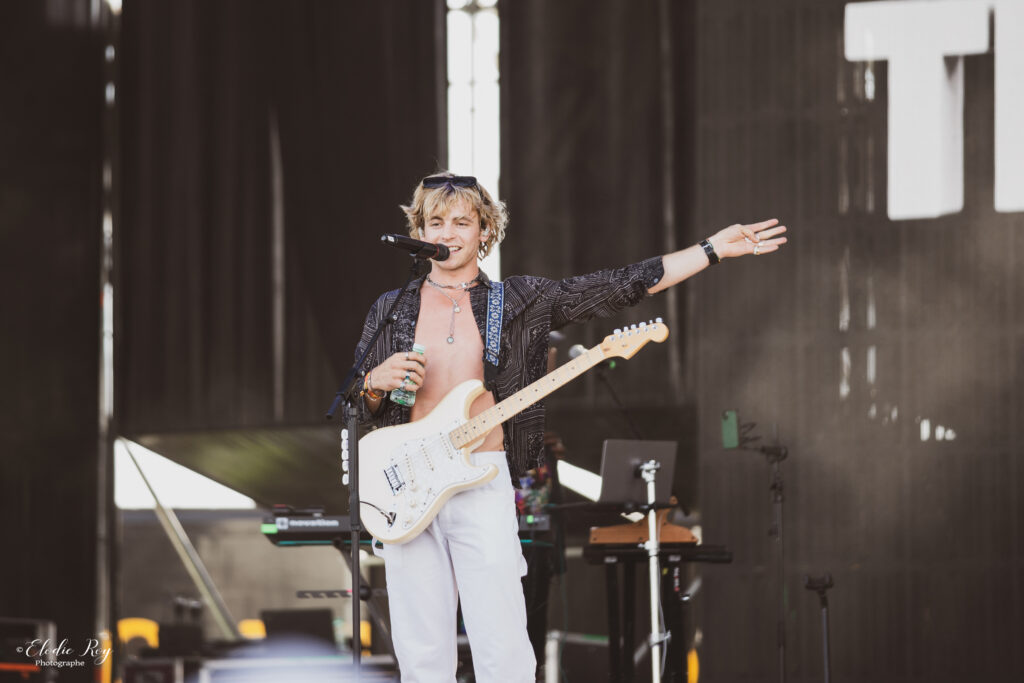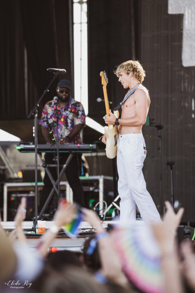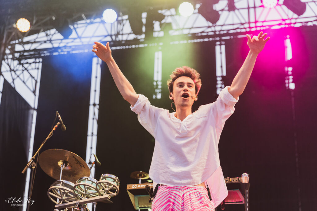Le second jour du festival démarre sous le soleil avec le groupe américain THE DRIVER ERA. Ce nom ne vous dit rien ?! Si je vous parle du boysband R5, vous allez sans doute le reconnaitre. Suite à la séparation du groupe en 2018, les frères LYNCH ont continué la musique sous le nom de THE DRIVER ERA. Musicalement, c’est assez complexe de mettre un genre musical car certaines chansons en live sonnent Rock et d’autres Pop avec des touches ReggaeE et Disco. Le groupe est composé de 5 personnes sur scène. Pas le temps de s’ennuyer, on a le droit à un interlude de danse d’un des musiciens avec une jeune femme. Fort sympa. Il ne pouvait pas y avoir de meilleur show pour débuter cette journée en douceur.