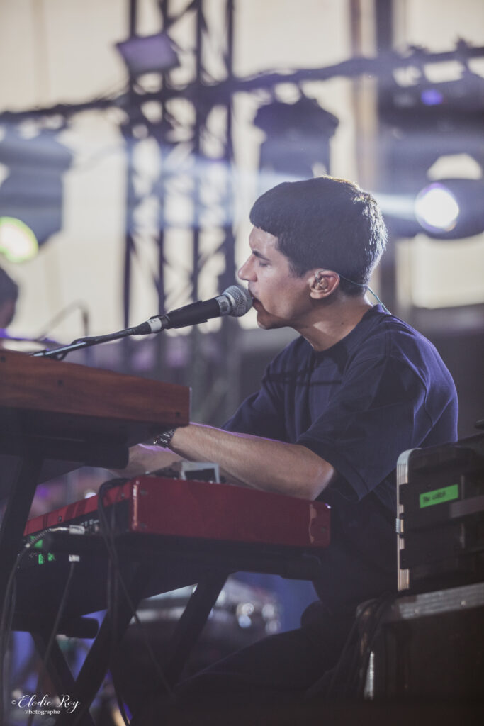 L’union entre les fans et JACOB est assez surprenant. En effet, c’est un concert unique mêlant Funk, Electro, Rap, Variete, etc. La scène est très colorée grâce à la présence de néons de toutes les couleurs. Ce qui m’impressionne le plus, c’est le nombre d’instruments qu’il joue (piano, guitare, percussions…). Il est accompagné sur scène de 3 choristes et de 2 musiciens.