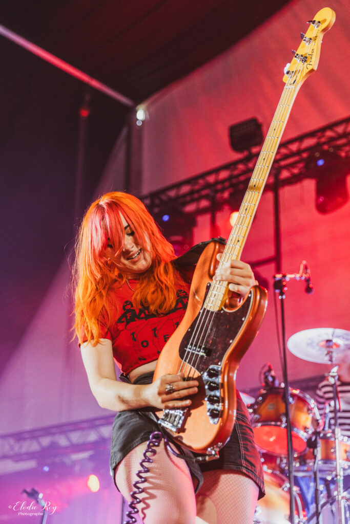 Le groupe HOTWAX est composé de 3 femmes venant du Royaume-Uni : une blonde, une brune et une rousse. Changement d’univers, cette fois place au Punk Rock. Le chapiteau est quasiment complet avant même le début de la troisième chanson de la setlist. L’énergie du groupe est débordante ! Le rythme ralentit rarement, les riffs de guitare se font entendre pour le bonheur du public qui a fait le déplacement. Elles nous informent au micro que c’est la première fois qu’elles jouent en concert en dehors du UK.