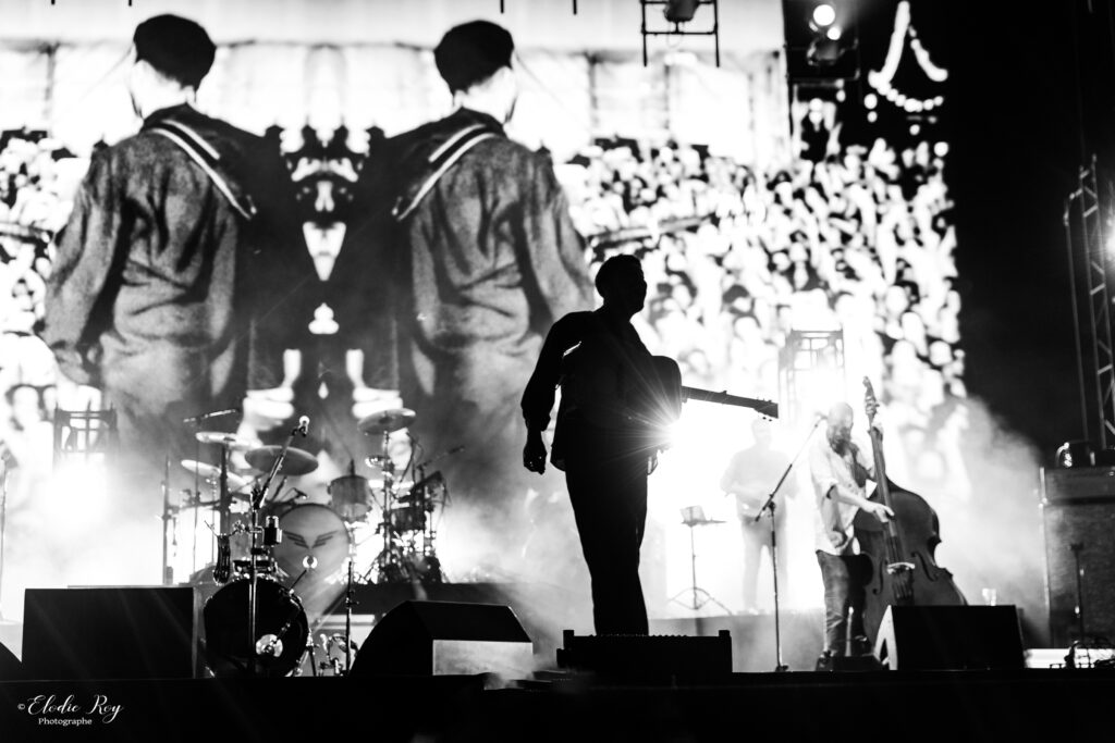 Avant dernier concert de la journée : le groupe Folk/Country/Rock britannique MUMFORD & SONS. Cela fait plaisir de voir le groupe car il passe rarement en concert en France. Pas moins de 8 personnes sur scène : le groupe + 3 personnes au saxophone, à la trompette et au trombone. Tout est 100% live à mon avis, c’est un plaisir. La voix grave du chanteur Marcus est enivrante/captivante. Les chansons sonnent souvent de la même façon, c’est-à-dire se ressemblent les unes des autres. Ce n’est pas une mauvaise critique car il y a peu de groupe qui présente un mix musical entre le folk, la country et le rock. Ce genre musical sonne comme la bande originale d’un western. Le groupe a un style musical bien à lui, qui est très appréciable. La pyrotechnie s’invite au show, c’est appréciable. I Will Wait termine le set accompagné d’un très beau feu d’artifices. On en prend plein les yeux.