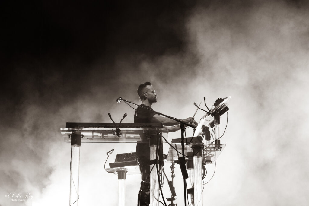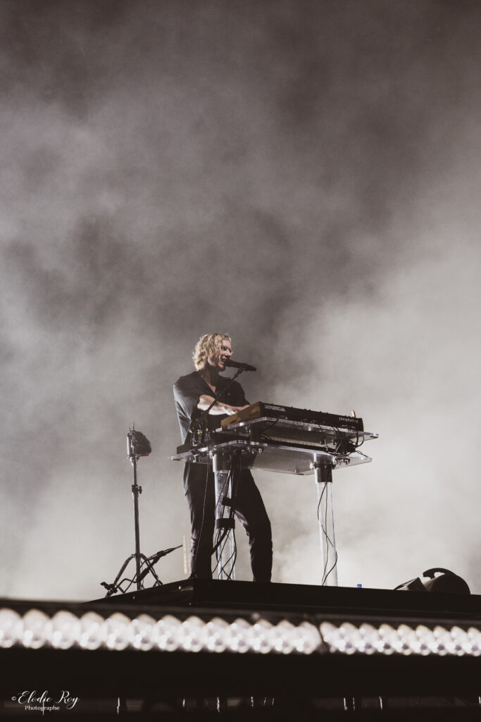 Concernant la scénographie, tout le show est assez dark. La seule lumière présente est bleue. D’ailleurs, à plusieurs reprises, on assiste à un beau spectacle de lasers. Pas de feu d’artifice pour clôturer le show mais une explosion de confettis. RÜFUS DU SOL envoi du lourd. Un show impeccable/extraordinaire !