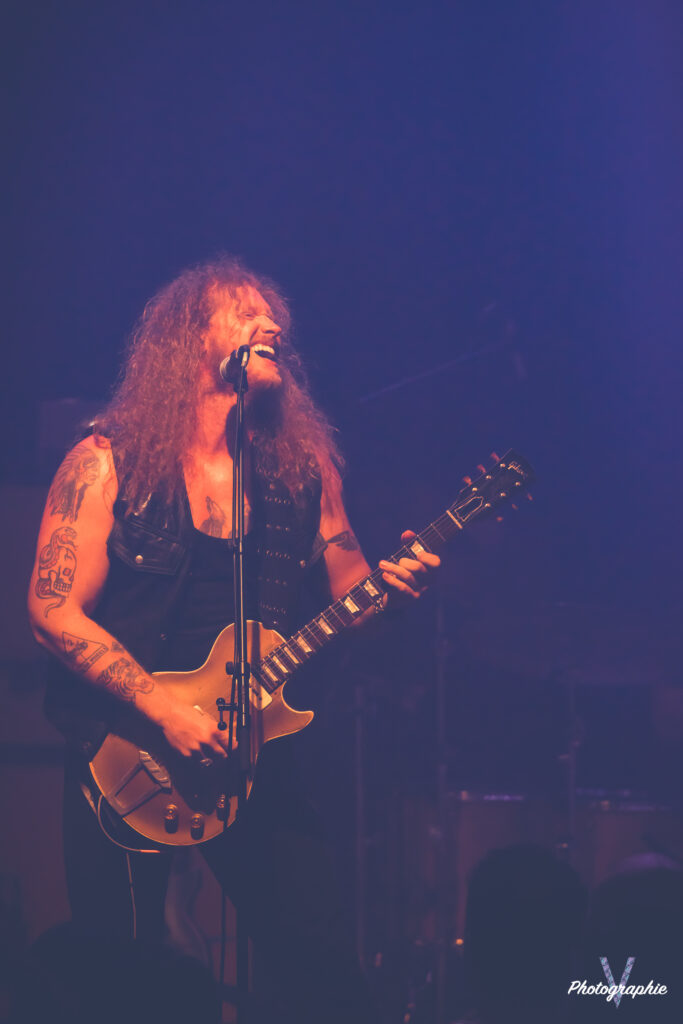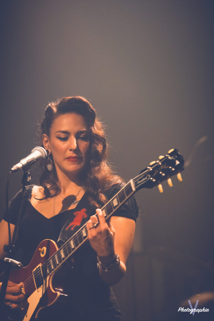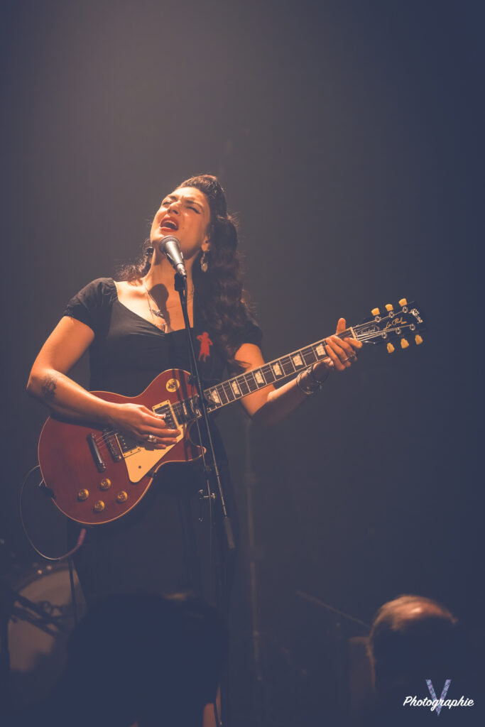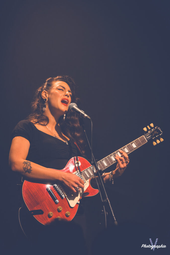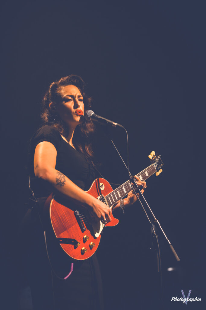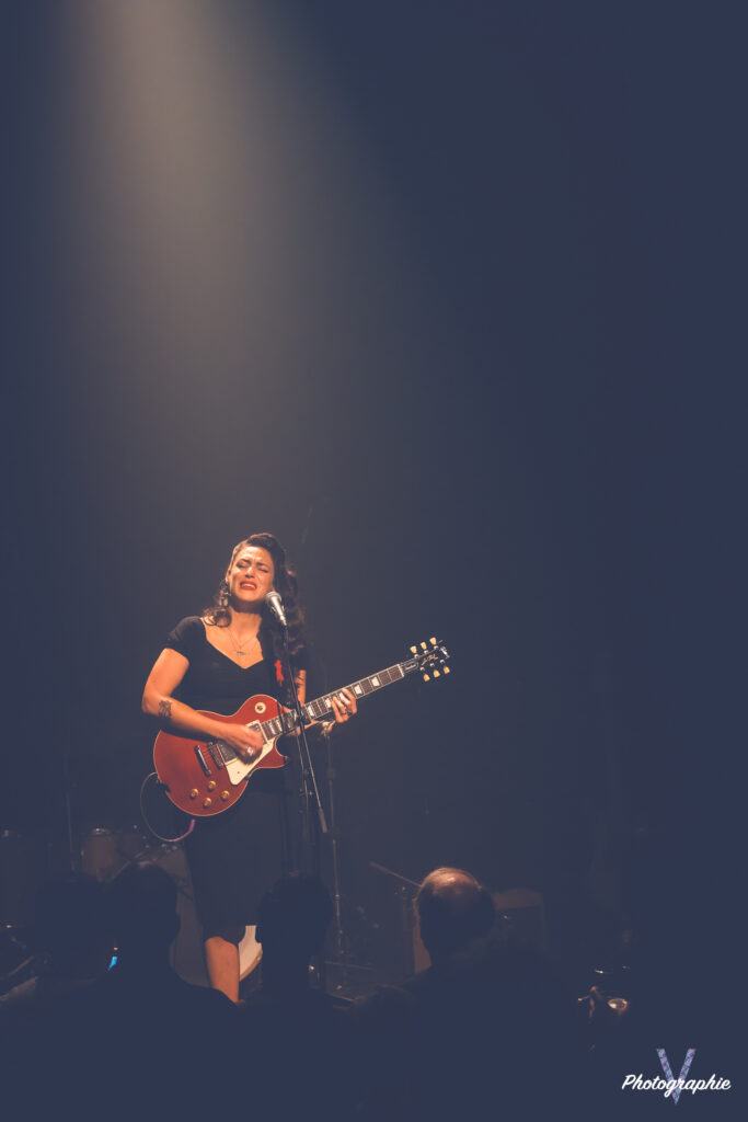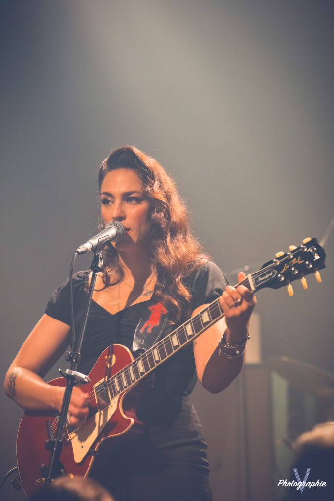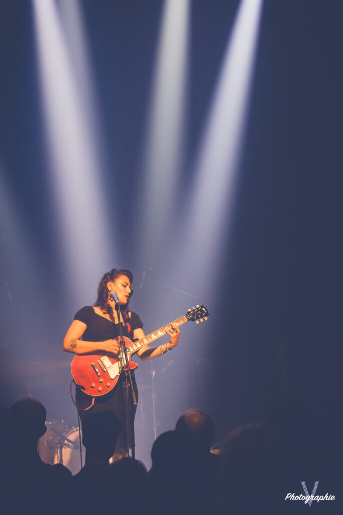 C’est seule en scène avec une belle Les Paul de chez Gibson qu’Haylen ouvre la soirée. Au menu, de la Soul, du Blues et un peu de Rock avec des textes en français et en anglais. On sent l’expérience derrière ce petit show qui paraît presque improvisé. L’artiste communique bien avec le public qui n’est pourtant pas venu pour elle et le courant passe. Un peu trop même parfois, on a toujours deux ou trois lourdingues qui lancent des petits blagues pas très drôles avec des ponctuations de rire gras qui confirment que l’imbécile heureux est toujours content de lui. Mais elle réagit bien, en douceur, avec philosophie. Une véritable bonne surprise avec une première partie qui n’aura ennuyé personne et qu’on aimerait pour notre part découvrir un jour avec un groupe pour l’épauler. Ça doit valoir le déplacement aussi !