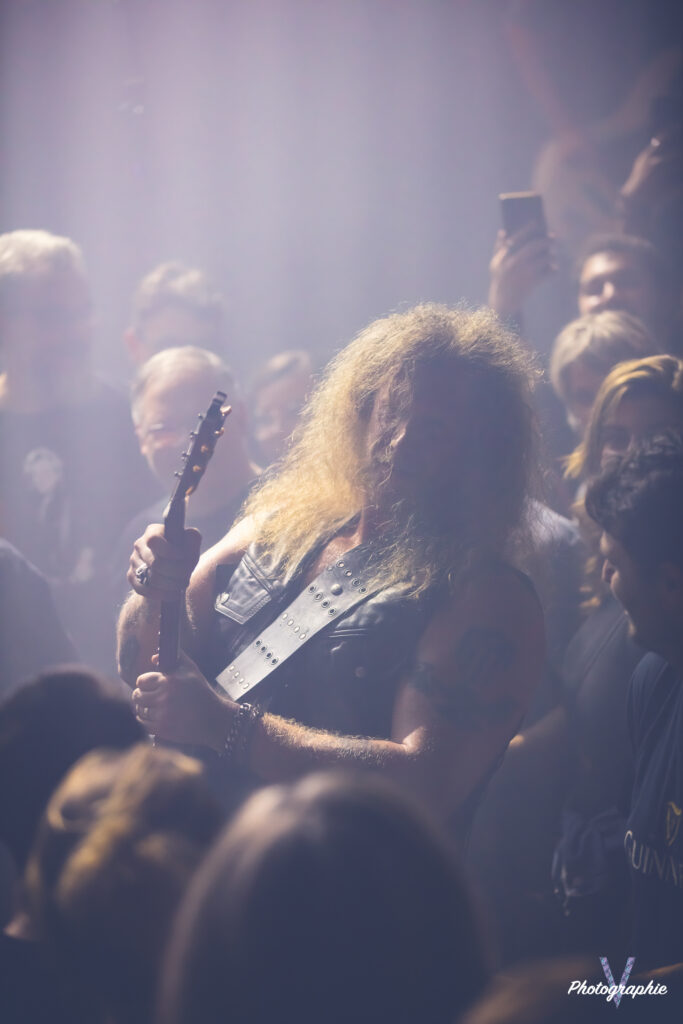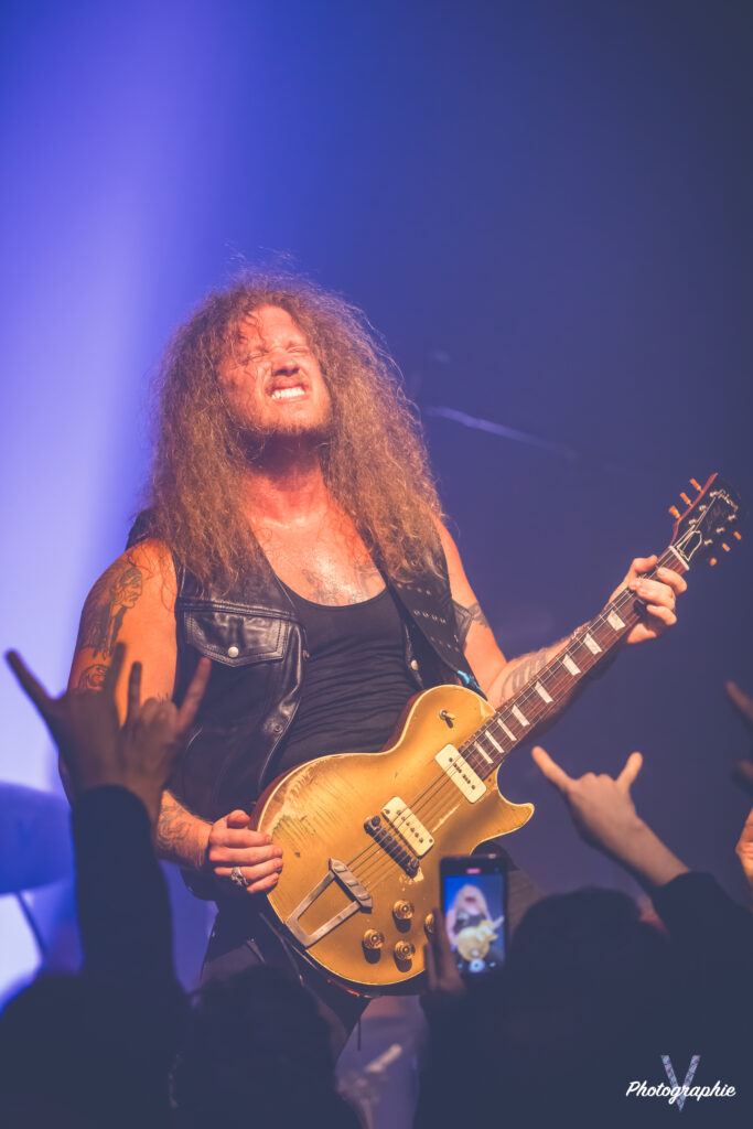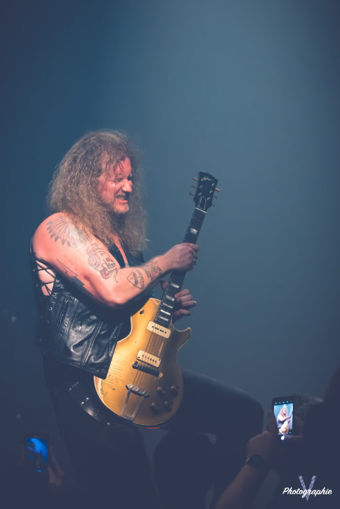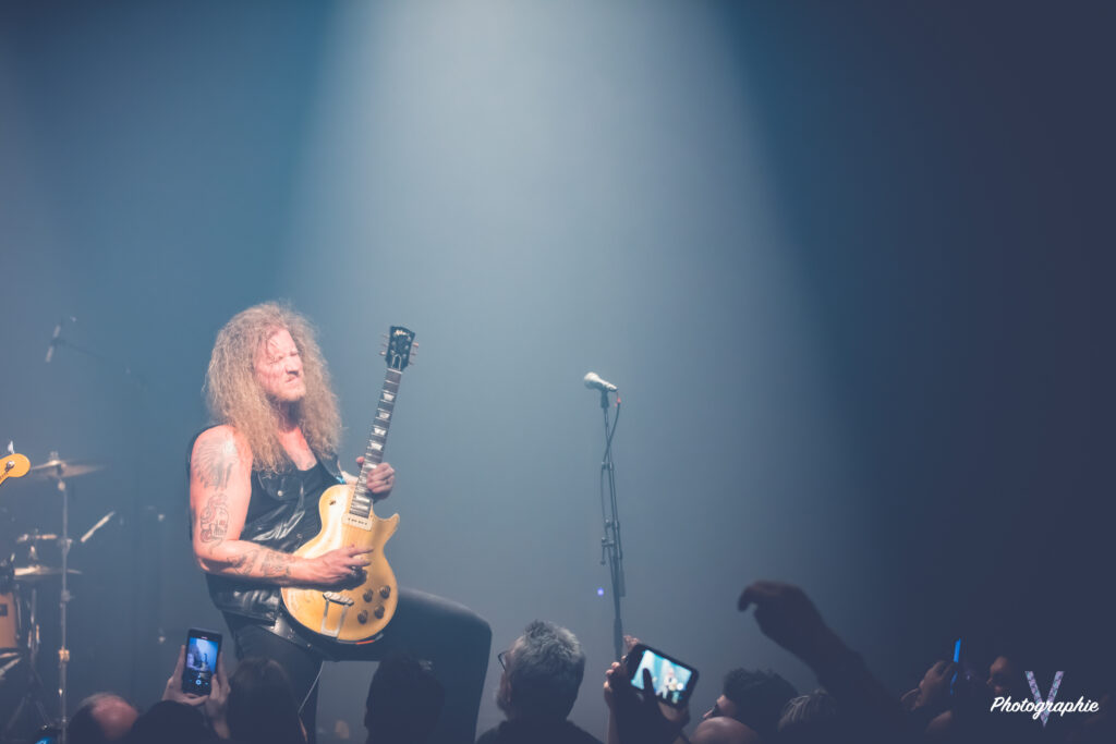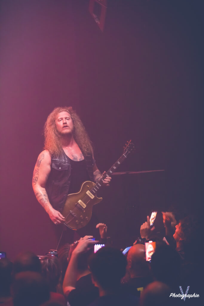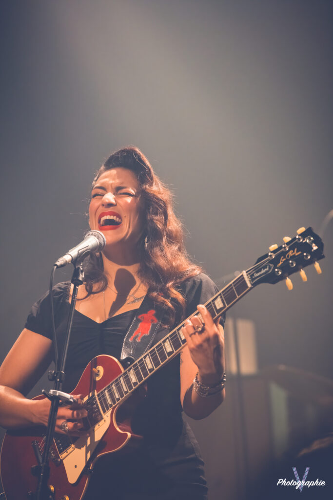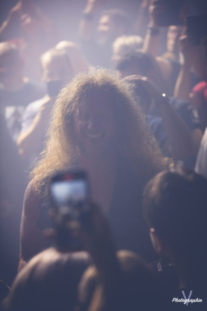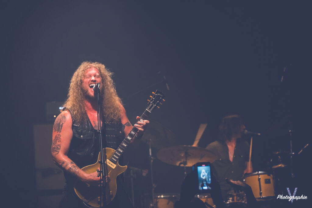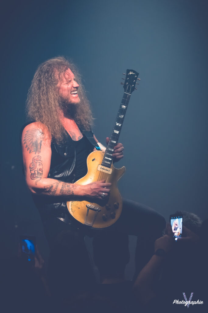 C’est seule en scène avec une belle Les Paul de chez Gibson qu’Haylen ouvre la soirée. Au menu, de la Soul, du Blues et un peu de Rock avec des textes en français et en anglais. On sent l’expérience derrière ce petit show qui paraît presque improvisé. L’artiste communique bien avec le public qui n’est pourtant pas venu pour elle et le courant passe. Un peu trop même parfois, on a toujours deux ou trois lourdingues qui lancent des petits blagues pas très drôles avec des ponctuations de rire gras qui confirment que l’imbécile heureux est toujours content de lui. Mais elle réagit bien, en douceur, avec philosophie. Une véritable bonne surprise avec une première partie qui n’aura ennuyé personne et qu’on aimerait pour notre part découvrir un jour avec un groupe pour l’épauler. Ça doit valoir le déplacement aussi !