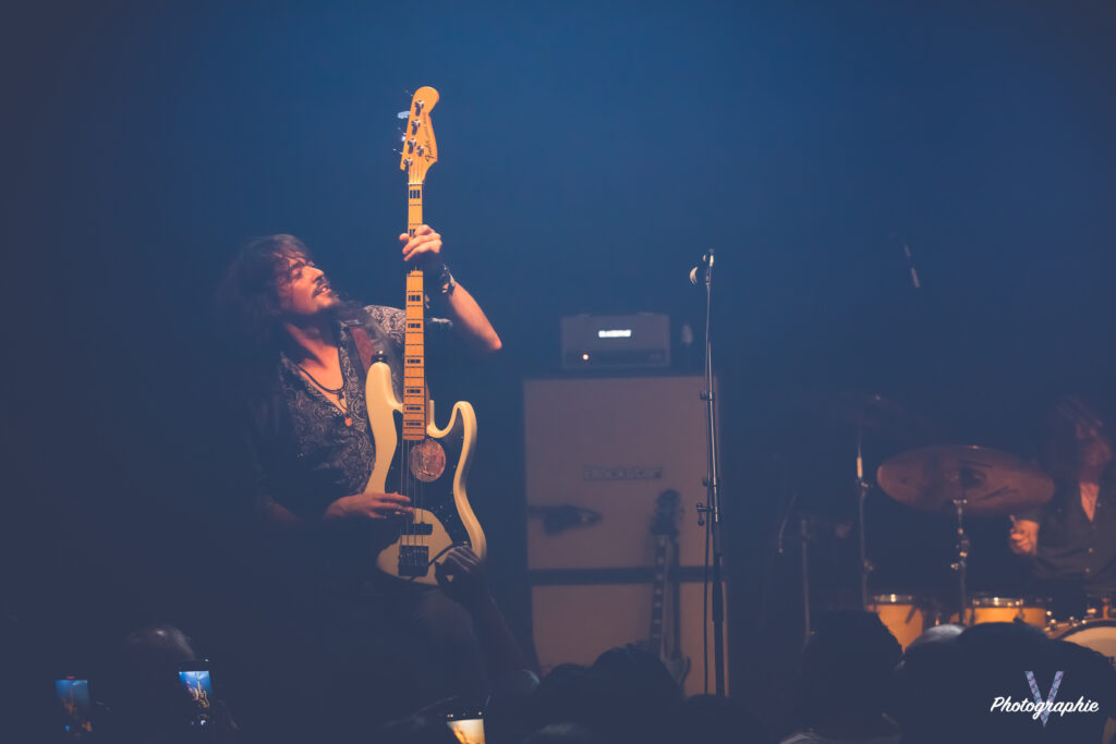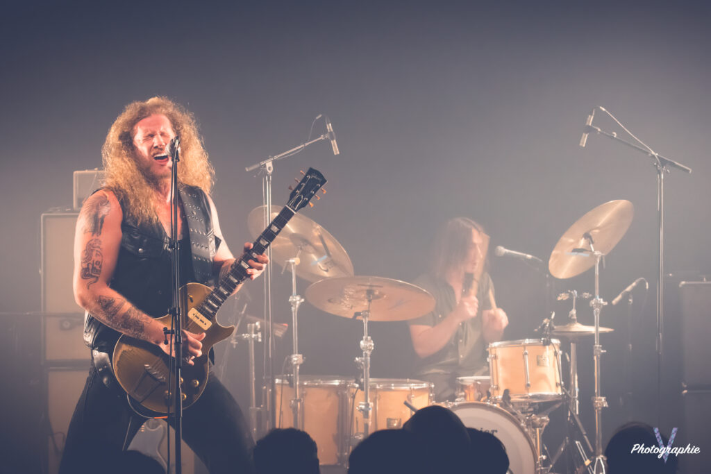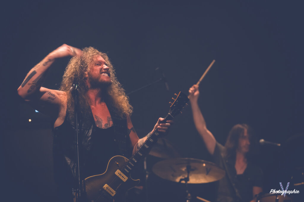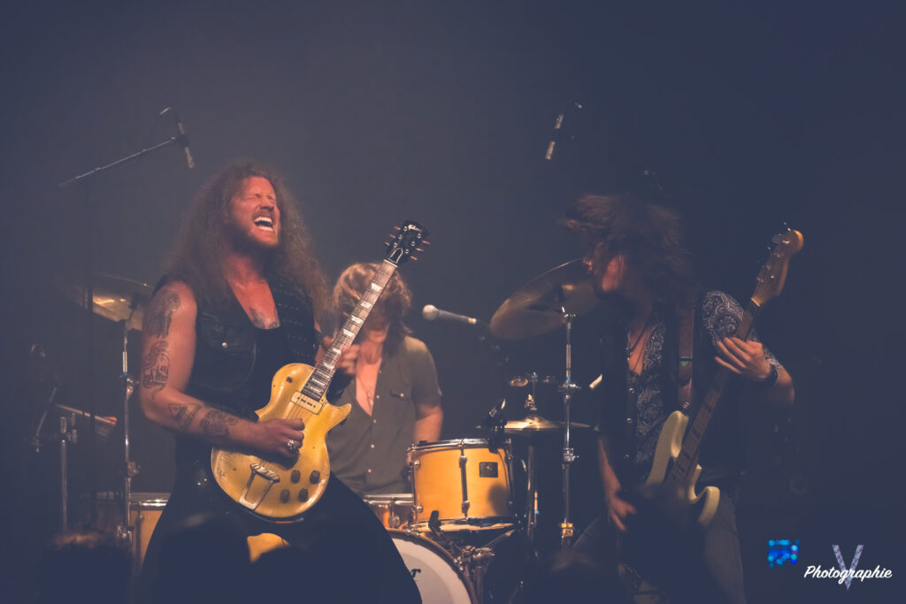 Jared James Nichols, derrière ce nom finalement assez peu connu en France se cache une sorte de fusion entre Zakk Wilde et Jeff Beck. Avec le premier, il partage un goût très prononcé pour le gros Rock où la pentatonique règne en maître absolu et avec le second une manière de jouer sans médiator (pour les novices, le médiator est un bout de plastique souvent triangulaire qui sert à gratter les cordes des guitares Folk et Electrique). Et le monsieur est doué, à tel point qu’il nous aura fallu la moitié du concert pour nous rendre compte qu’il parcourt sa Les Paul vintage à doigts nus. Non content d’être un excellent guitariste Jared est également le chanteur de la formation qui, pour le live, se compose d’un bassiste : Louis Collins et d’un batteur : Ryan Rice. On a donc une formule Power Trio avec des musiciens plutôt mobile. Jared et Louis descendront même dans la fosse avec le public pendant des solos. La setlist passe toute seule, on ne sent pas le temps passer et à la fin du concert le guitariste/chanteur invite le public à le rejoindre à l’entrée de la salle pour prendre des photos, discuter et éventuellement acheter un CD. On sent une franche générosité chez Jared Nichols, celle-ci est autant musicale qu’humaine. On espère sincèrement avoir l’occasion de le revoir à Paris ou lors d’un festival.