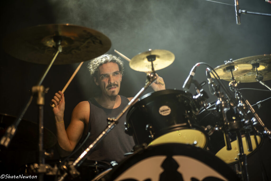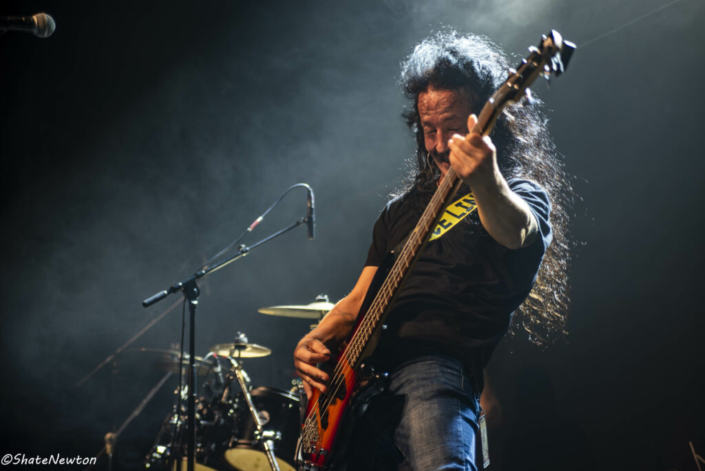 Les interactions s’installent rapidement avec un public qui semble découvrir une musique qui leur sied, pourtant pas forcément dans le même registre que nos compères allemands. Ils s’essaient à beaucoup de styles durant cette grosse demi-heure (Thrash, Death, Hardcore, Power), rendant difficile une classification qui leur serait vraiment fidèle. Sans que le show soit trop travaillé, on voit très bien que Cristian Juárez (guitare, voix) sait y faire pour haranguer une foule à bon escient. Si Alexis Gálvez (batterie) est tranquillement installé derrière son set, Daniel Juárez (guitare,chœurs) et Marcos Morales (basse) jouent parfois les équilibristes pour se mouvoir sur ce petit bout de scène tant ils débordent d’énergie. Une belle découverte pour ouvrir cette soirée tant attendue.
