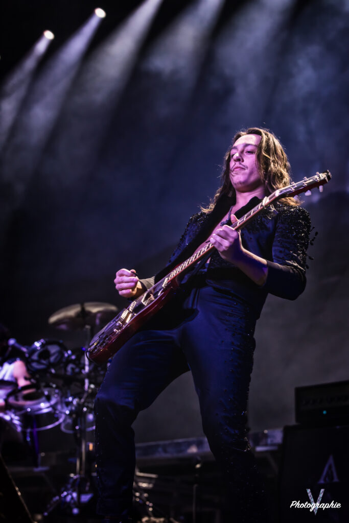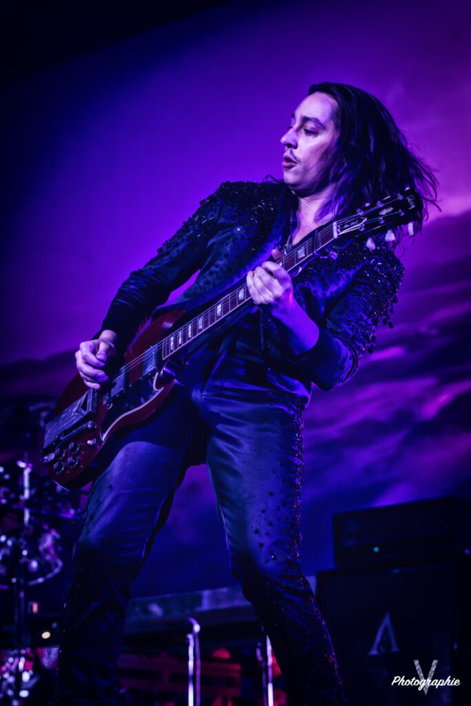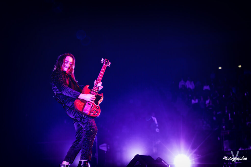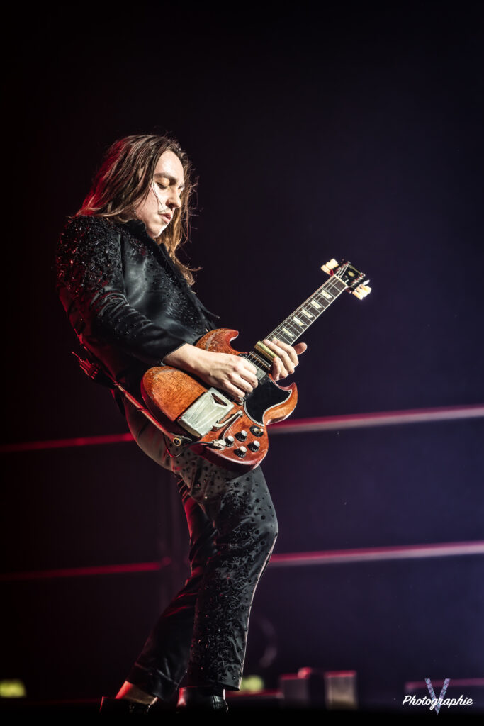 Au registre des choses un peu moins glorieuses, on peut difficilement passer à côté du jeu plus qu’approximatif de Jake Kiszka. Le jeu synchronisé entre la main gauche et la main droite est complètement à la ramasse sur quasiment tous les solos et certains sont très longs ! Du coup, on souffre un peu. En sortant de la salle beaucoup de fans commentent le problème nous confortant dans notre impression. Peut-être un soir sans ? Après tout ça reste du live, peut être qu’il ne s’entendait pas bien, peut être qu’il était en petite forme ou sous substance ? Mais le guitariste à l’origine du solo qui a été consacré meilleur solo du 21-ème siècle sur le titre The Weight of Dreams par les lecteurs de Total Guitar n’aura pas brillé ce soir.