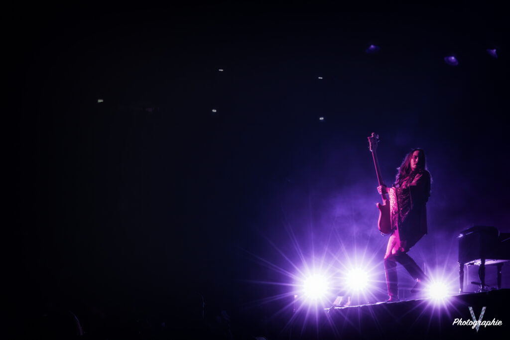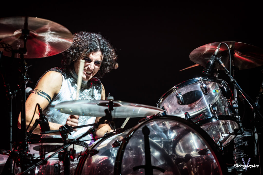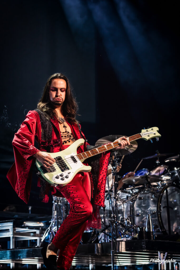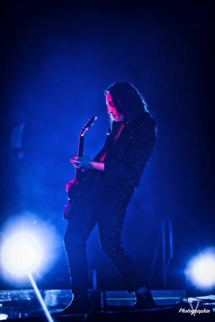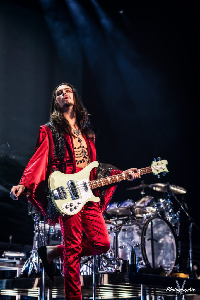 Au registre des choses un peu moins glorieuses, on peut difficilement passer à côté du jeu plus qu’approximatif de Jake Kiszka. Le jeu synchronisé entre la main gauche et la main droite est complètement à la ramasse sur quasiment tous les solos et certains sont très longs ! Du coup, on souffre un peu. En sortant de la salle beaucoup de fans commentent le problème nous confortant dans notre impression. Peut-être un soir sans ? Après tout ça reste du live, peut être qu’il ne s’entendait pas bien, peut être qu’il était en petite forme ou sous substance ? Mais le guitariste à l’origine du solo qui a été consacré meilleur solo du 21-ème siècle sur le titre The Weight of Dreams par les lecteurs de Total Guitar n’aura pas brillé ce soir.