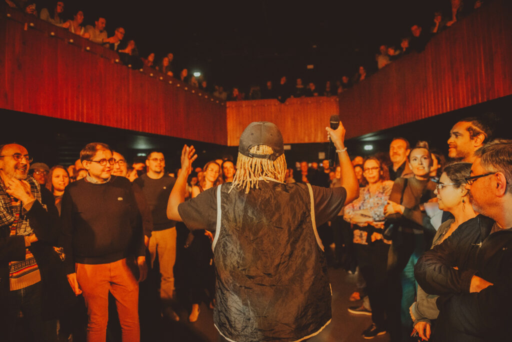 Nous sommes maintenant invités à nous diriger dans la petite salle de Paul B pour découvrir YellowStraps. Artiste découvert en 2020 avec son EP Goldress qui s’est hissé à la première place du top 5 des EP de la semaine de BBC 1xtra. L’artiste a même collaboré avec la célèbre marque de soda Coca-Cola sur une publicité. Ce soir, l’artiste nous fait découvrir son premier album tentacle mélangeant la langue de Molière et celle de Shakespeare. L’artiste a rendu visite au public en se rendant dans la fosse.