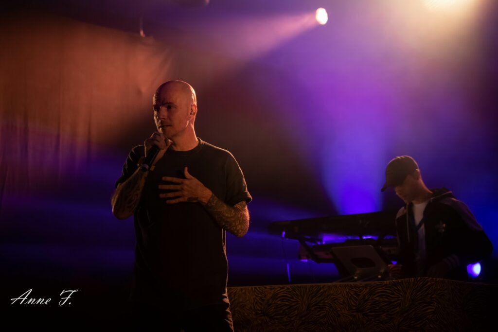 Rodin chante en Occitan et explique que ça lui tient à cœur. Avec son univers hybride, mélange de Hip Hop, d’Electro et de chants traditionnels, il fait participer les spectateurs à tour de rôle , les fait danser et va chauffer l’ambiance pour la suite.