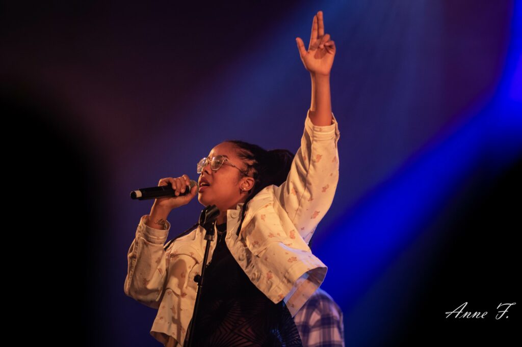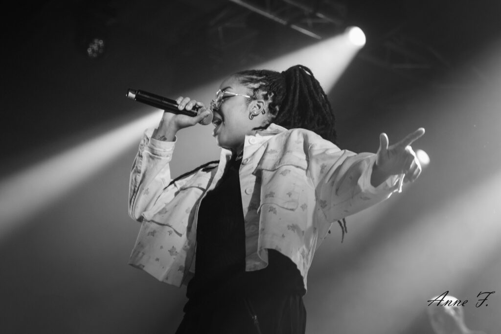 Devant une salle désormais pleine à craquer, Soom T va enflammer la foule. Accompagnée de ses musiciens, arpentant la scène avec énergie, sa musique est engagée et militante. Avec un flow très rapide, elle va proposer un voyage musical entre Dub, Raggamufin et Hip Hop.